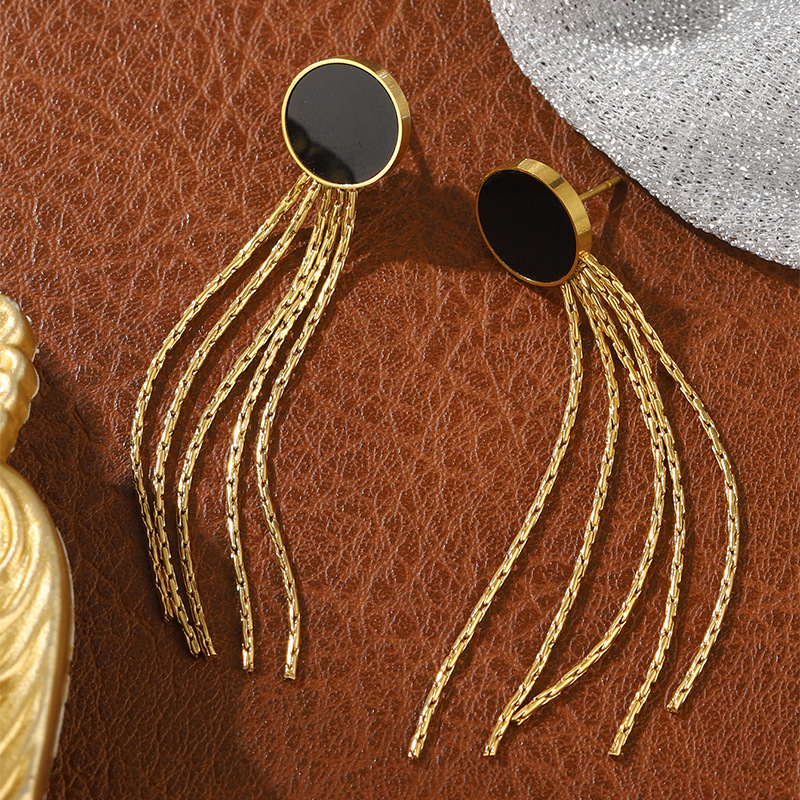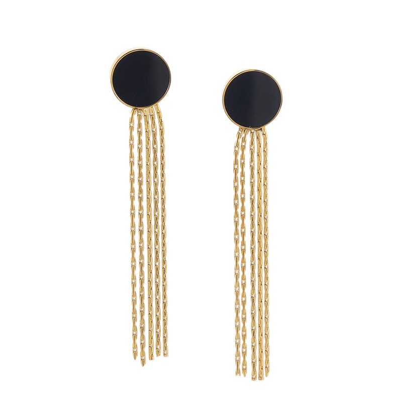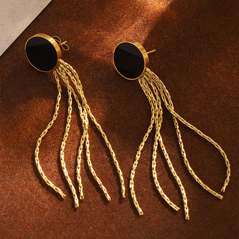 Acier inoxydable 304 boucle d'oreille en gland, avec coquille noire, Plaqué d'or, bijoux de mode & pour femme, Vendu par paire