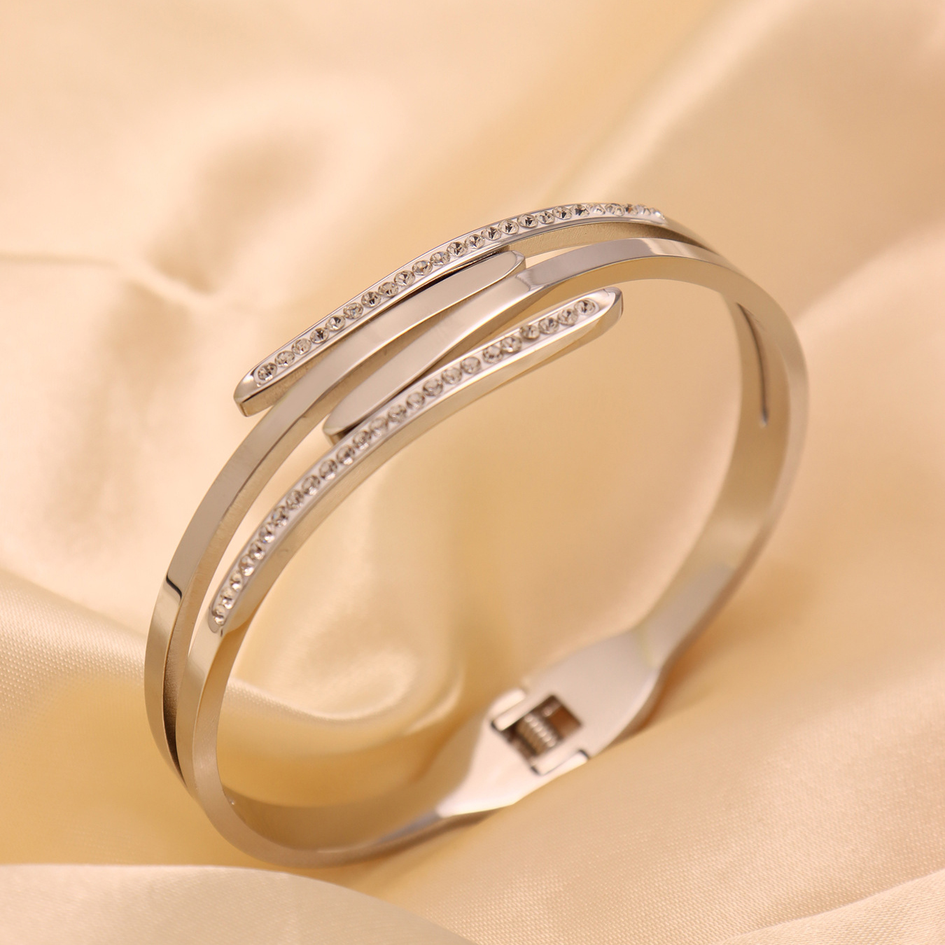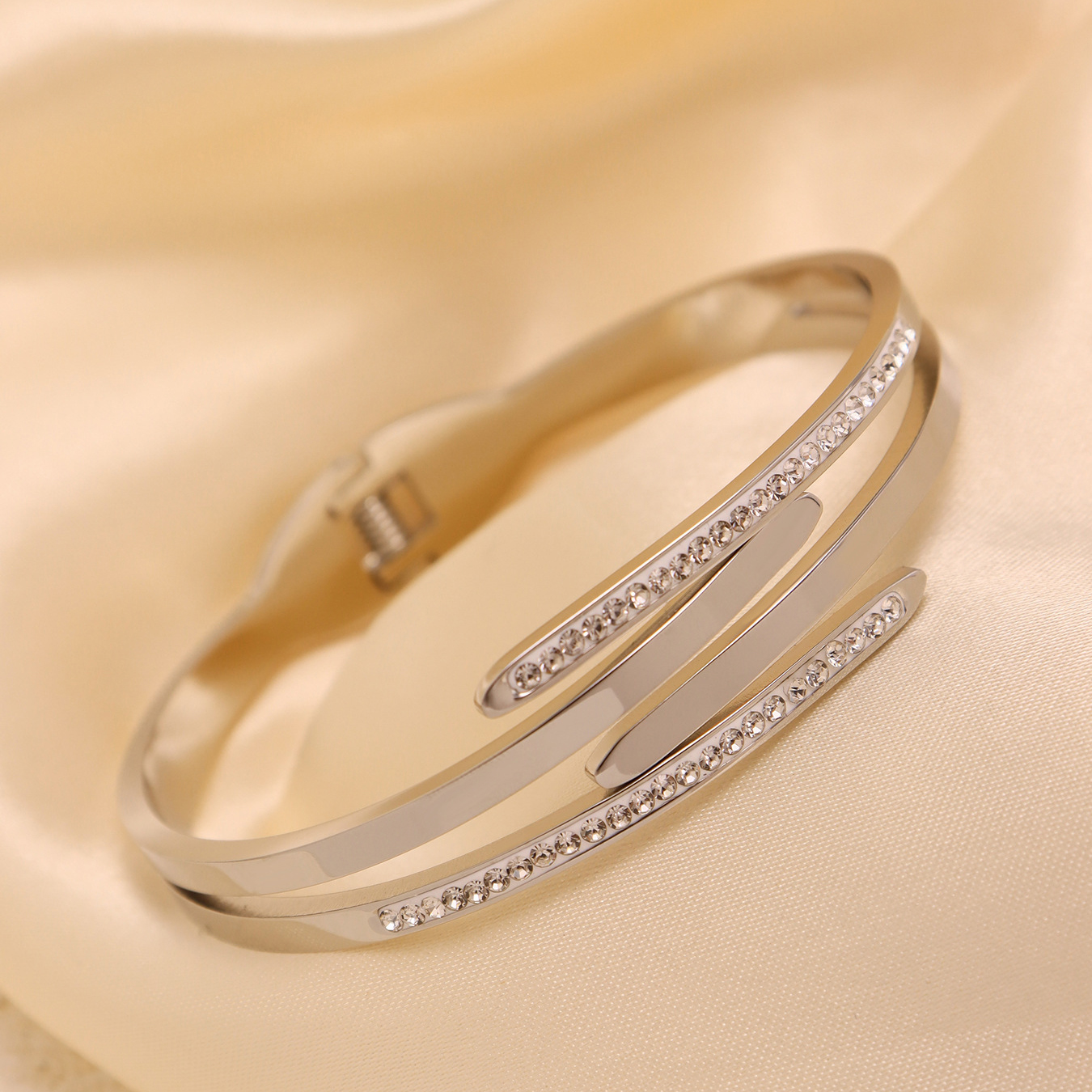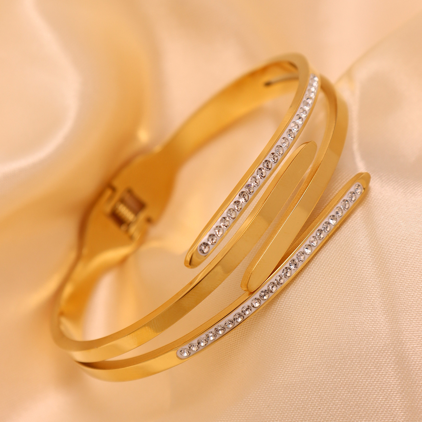 Bracelet en acier inoxydable, Placage, avec strass, plus de couleurs à choisir, 4mm, Diamètre inté Environ Environ 6.5 pouce, Vendu par PC