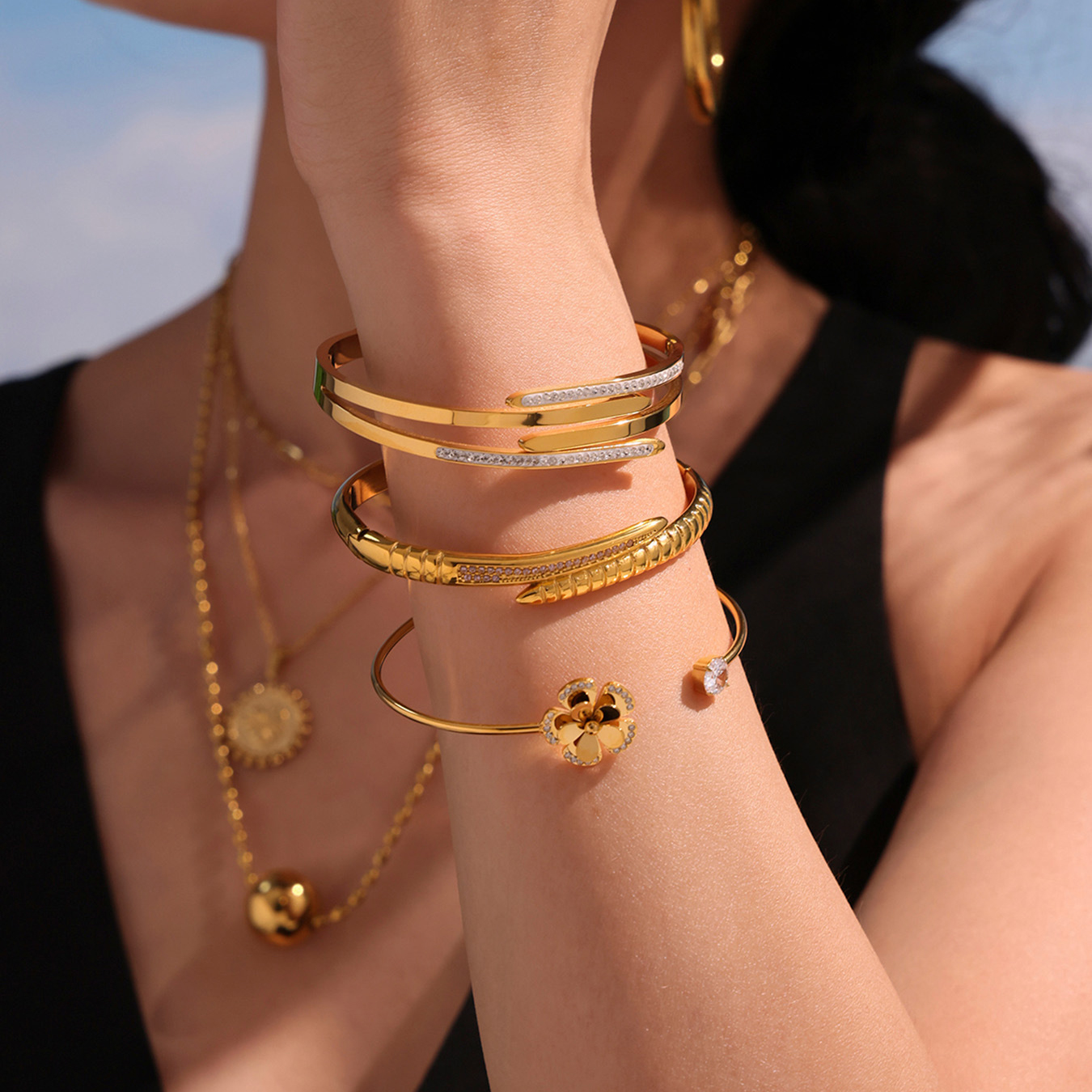 Acier inoxydable 304 bracelet manchette, Placage, styles différents pour le choix & pavé de micro zircon & pour femme, plus de couleurs à choisir, Vendu par PC