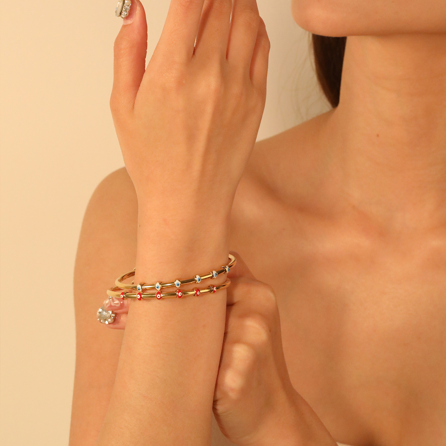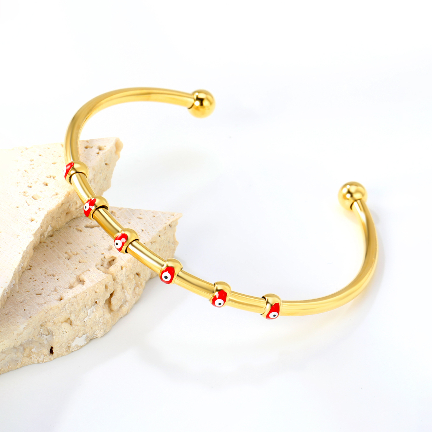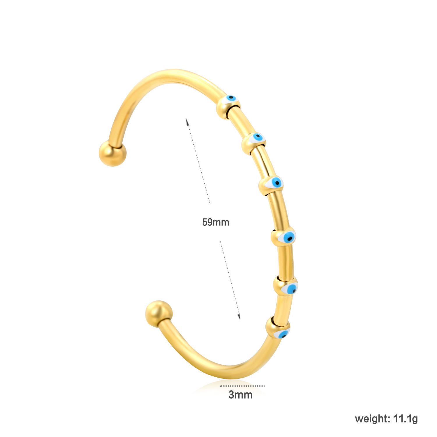 Evil Eye Bracelet Bijoux, acier inoxydable, avec résine, Main de Fatma, Placage de couleur d'or, bracelet à breloques & Islam bijoux & motif de mauvais œil & réglable & émail   Diamètre inté Environ 56mm Environ 7 pouce, Vendu par PC