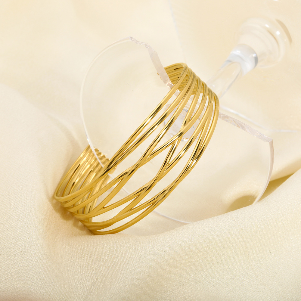 Acier inoxydable 304 bracelet manchette, Placage, styles différents pour le choix & pour femme & creux, doré, Vendu par PC