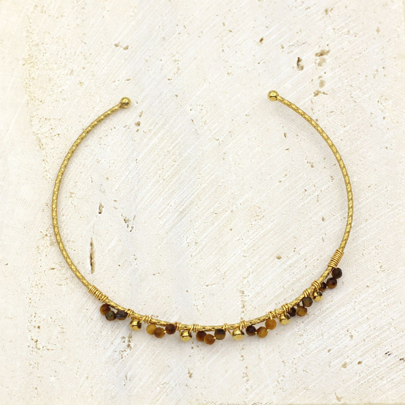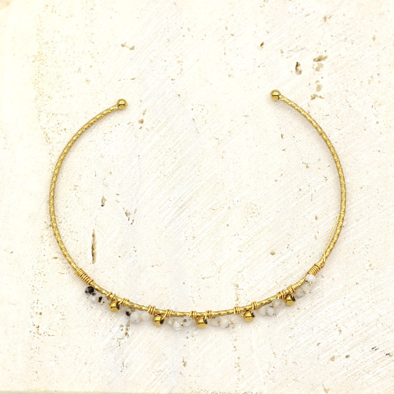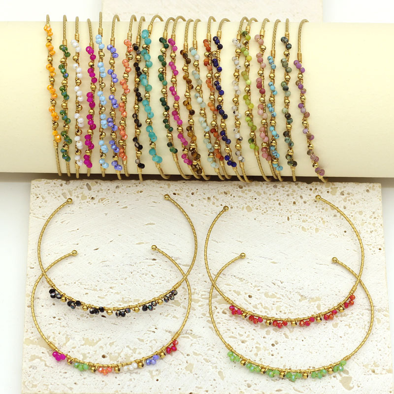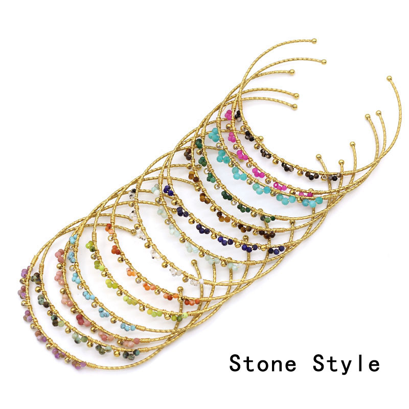 Acier inoxydable 304 bracelet manchette, avec Pierre naturelle, Placage de couleur d'or, bijoux de mode, plus de couleurs à choisir, 120x170x8mm, Longueur:55 cm, Vendu par PC