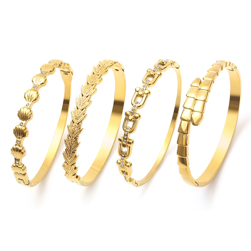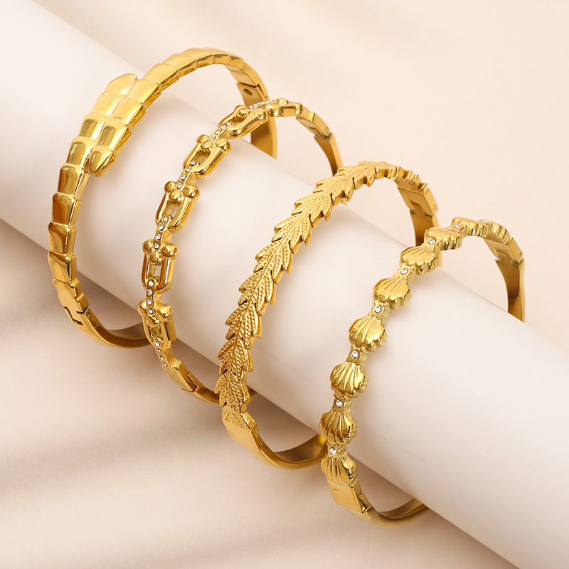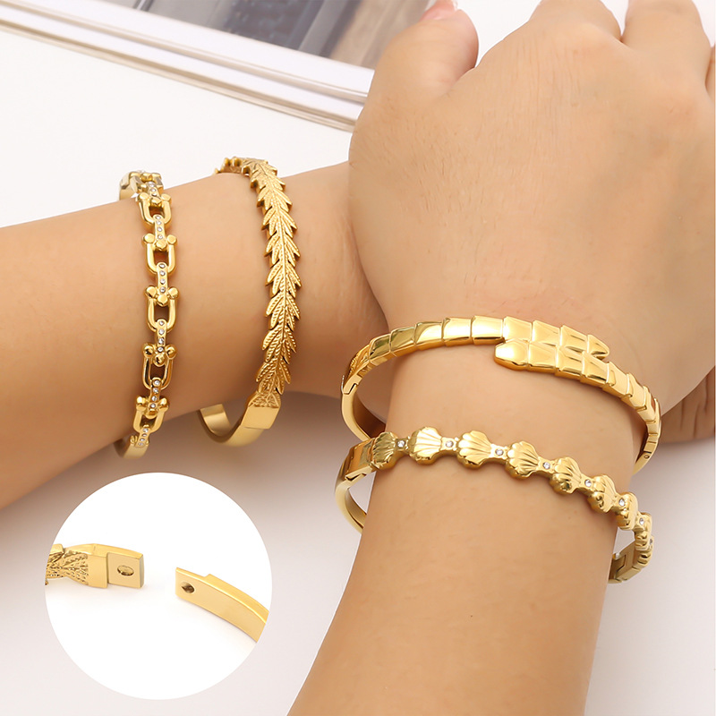 Acier inoxydable 304 bracelet ordinaire, Placage de couleur d'or, styles différents pour le choix & pour femme & avec strass, Vendu par PC