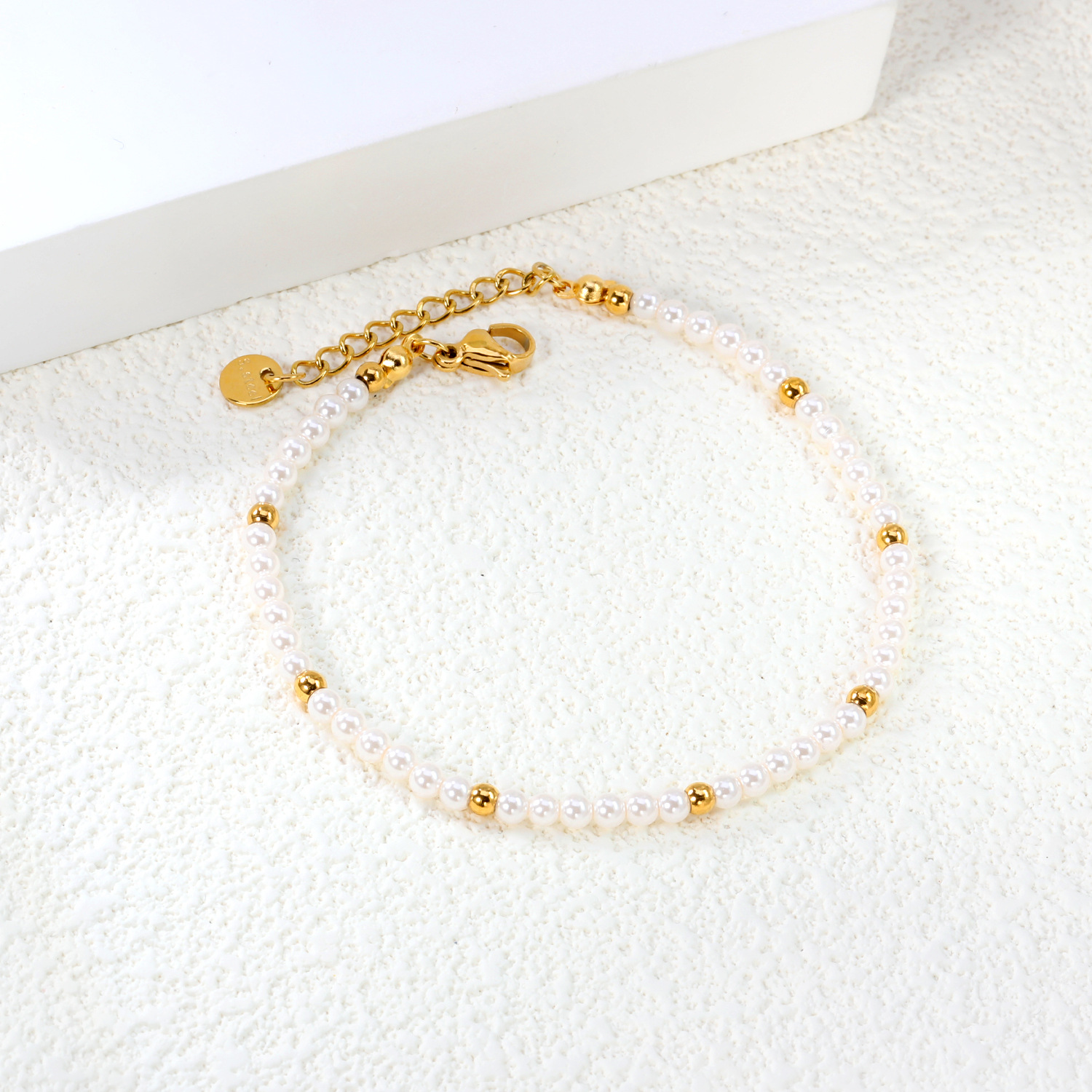 Acier inoxydable 304 bracelet, avec perle de plastique, Placage, bijoux de mode & pour femme, Vendu par PC