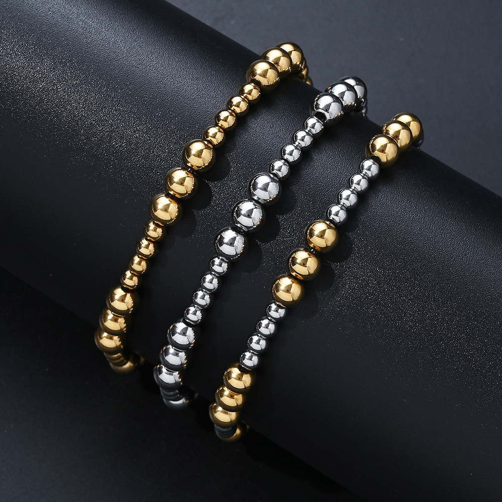Bracelets en acier inoxydable, Acier inoxydable 304, chaîne à billes, couleur originale Environ 7.2 pouce, Vendu par brin