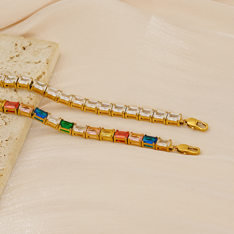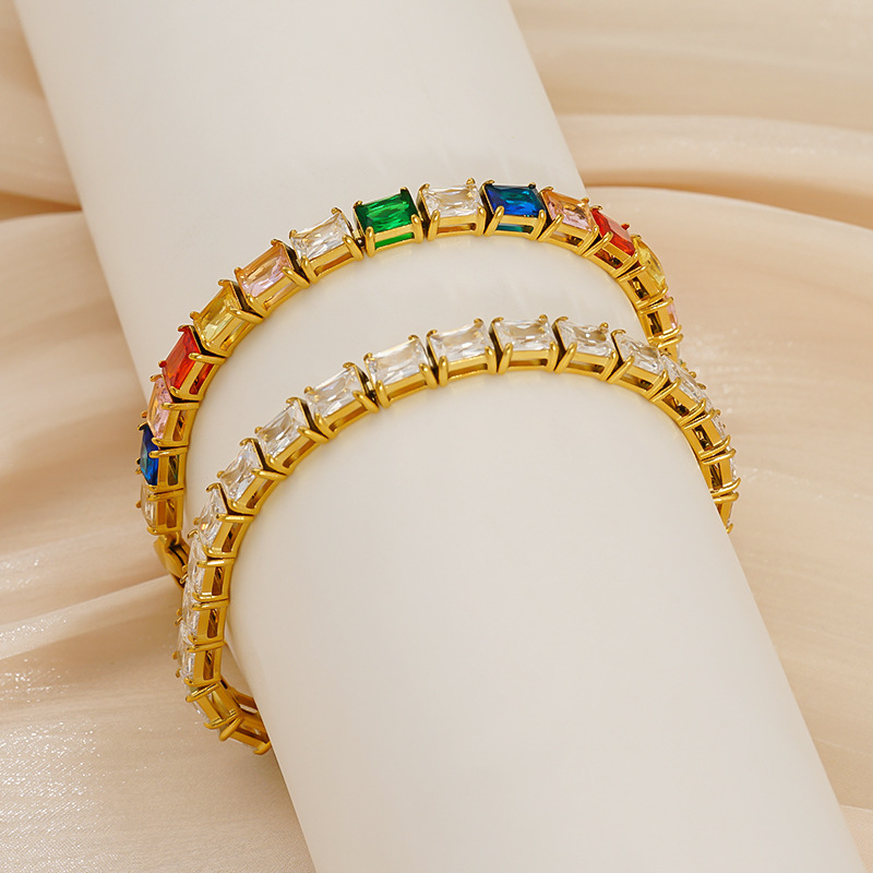 Acier inoxydable 304 bracelet, Plaqué or 18K, bijoux de mode & pavé de micro zircon & pour femme, plus de couleurs à choisir, Vendu par PC