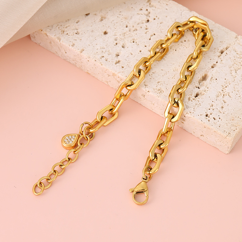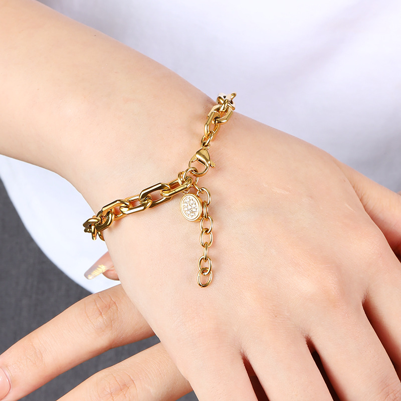 Acier inoxydable 304 bracelet, avec 1.4inch chaînes de rallonge, Placage de couleur d'or, styles différents pour le choix & pavé de micro zircon & pour femme, Longueur:Environ 6.9 pouce, Vendu par PC