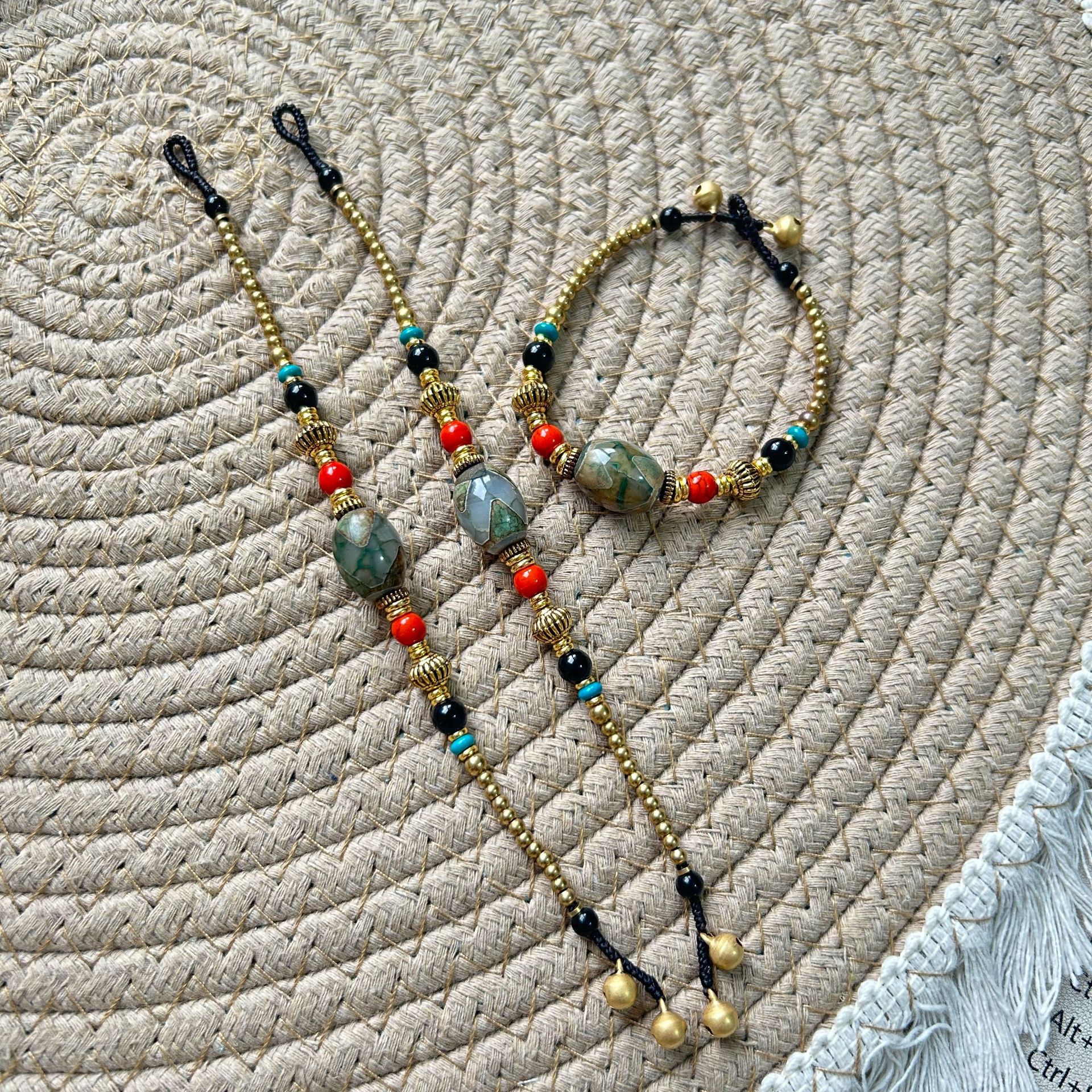 Acier inoxydable 304 bracelet, avec Cordon de noeud & Gravier naturel & perle de plastique, fait à la main, bijoux de mode & unisexe & styles différents pour le choix, Longueur:Environ 18.5 cm, Vendu par PC