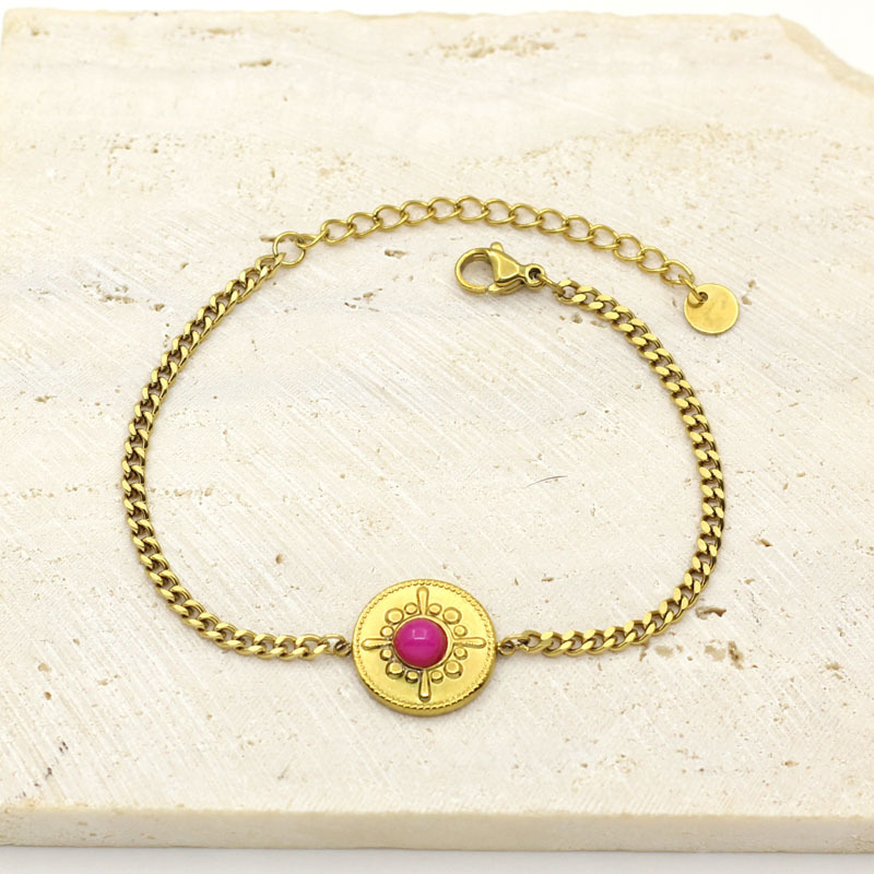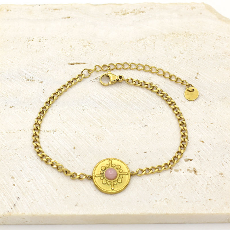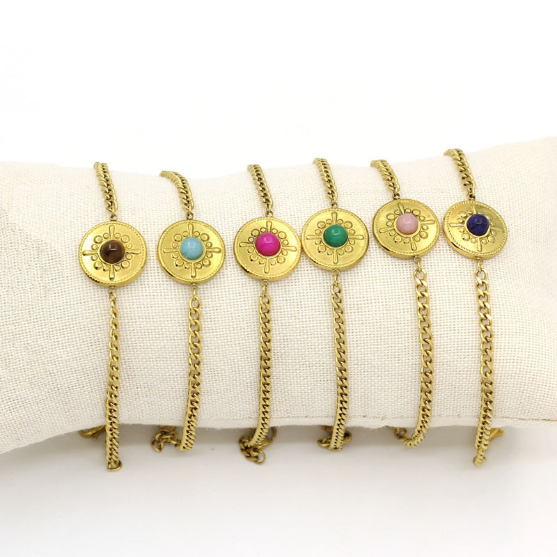 Acier inoxydable 304 bracelet, avec Pierre naturelle, Baroque, Placage de couleur d'or, bijoux de mode, plus de couleurs à choisir, Vendu par PC