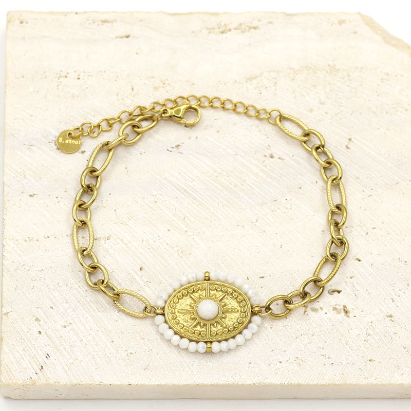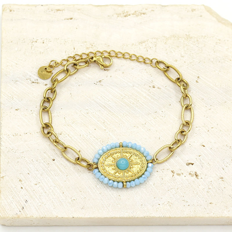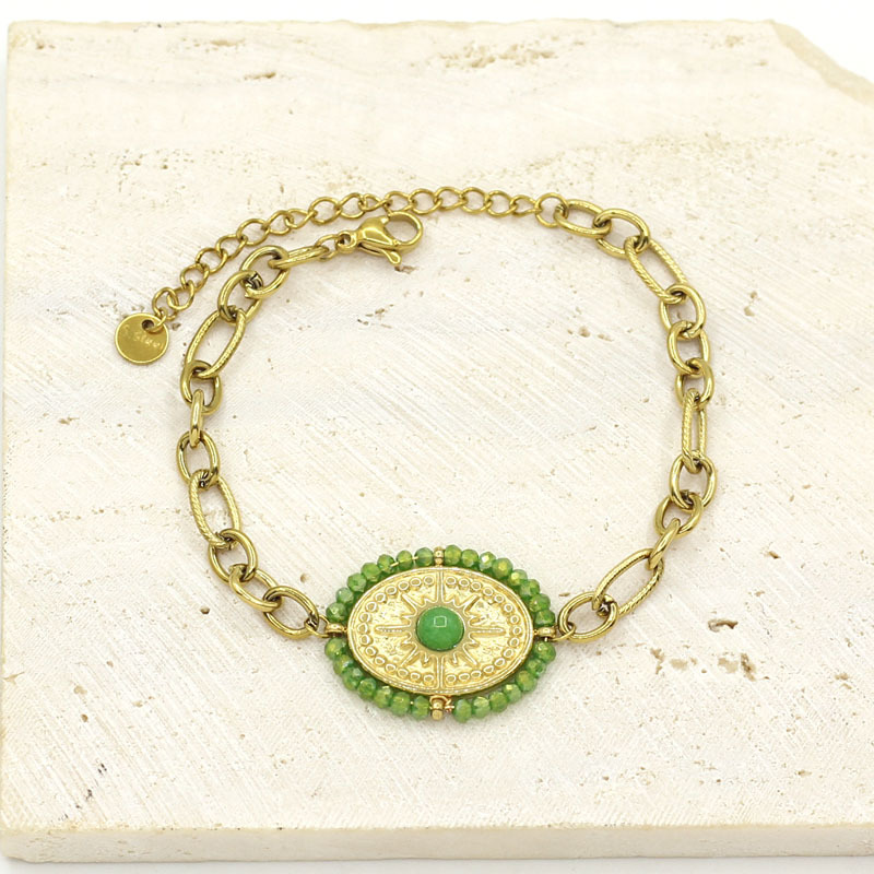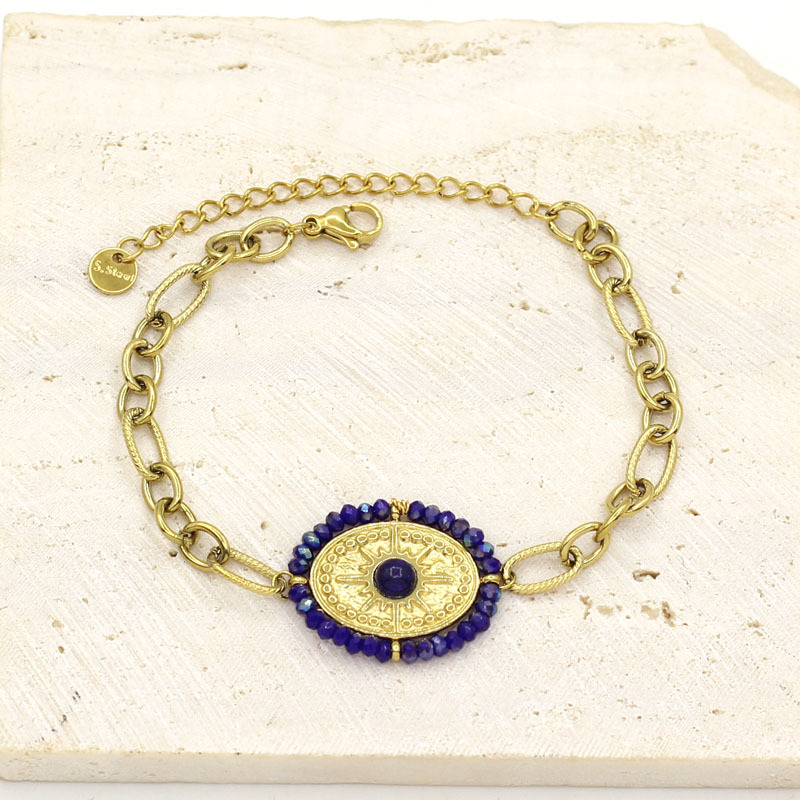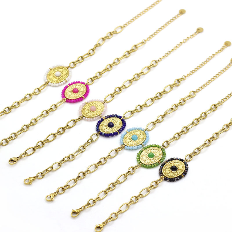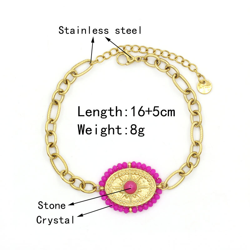 Acier inoxydable 304 bracelet, avec pierre gemme & cristal, Placage de couleur d'or, bijoux de mode, plus de couleurs à choisir, Vendu par PC