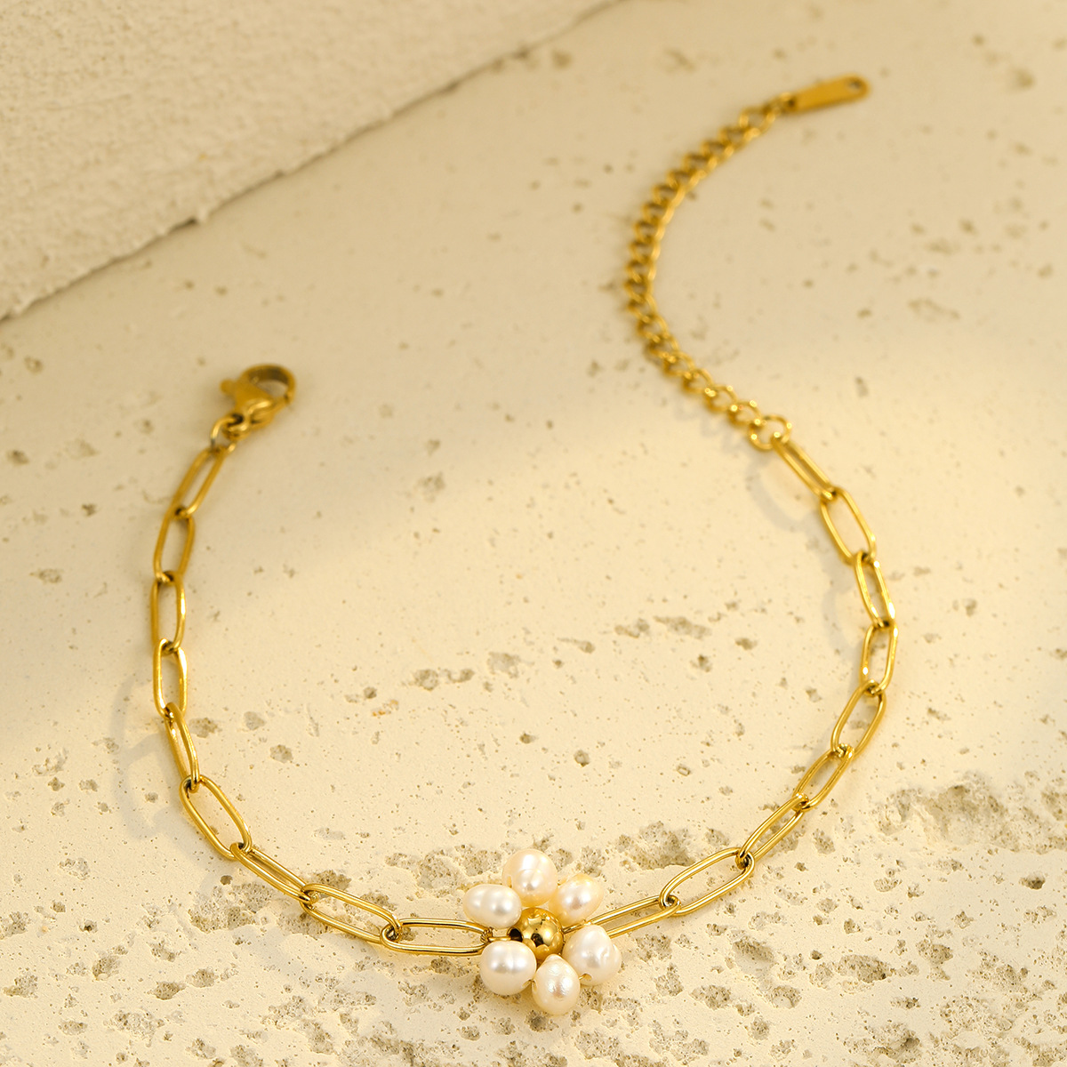 Acier inoxydable 304 bracelet, avec perle de plastique, Plaqué or 18K, bijoux de mode & styles différents pour le choix & pour femme, Vendu par PC