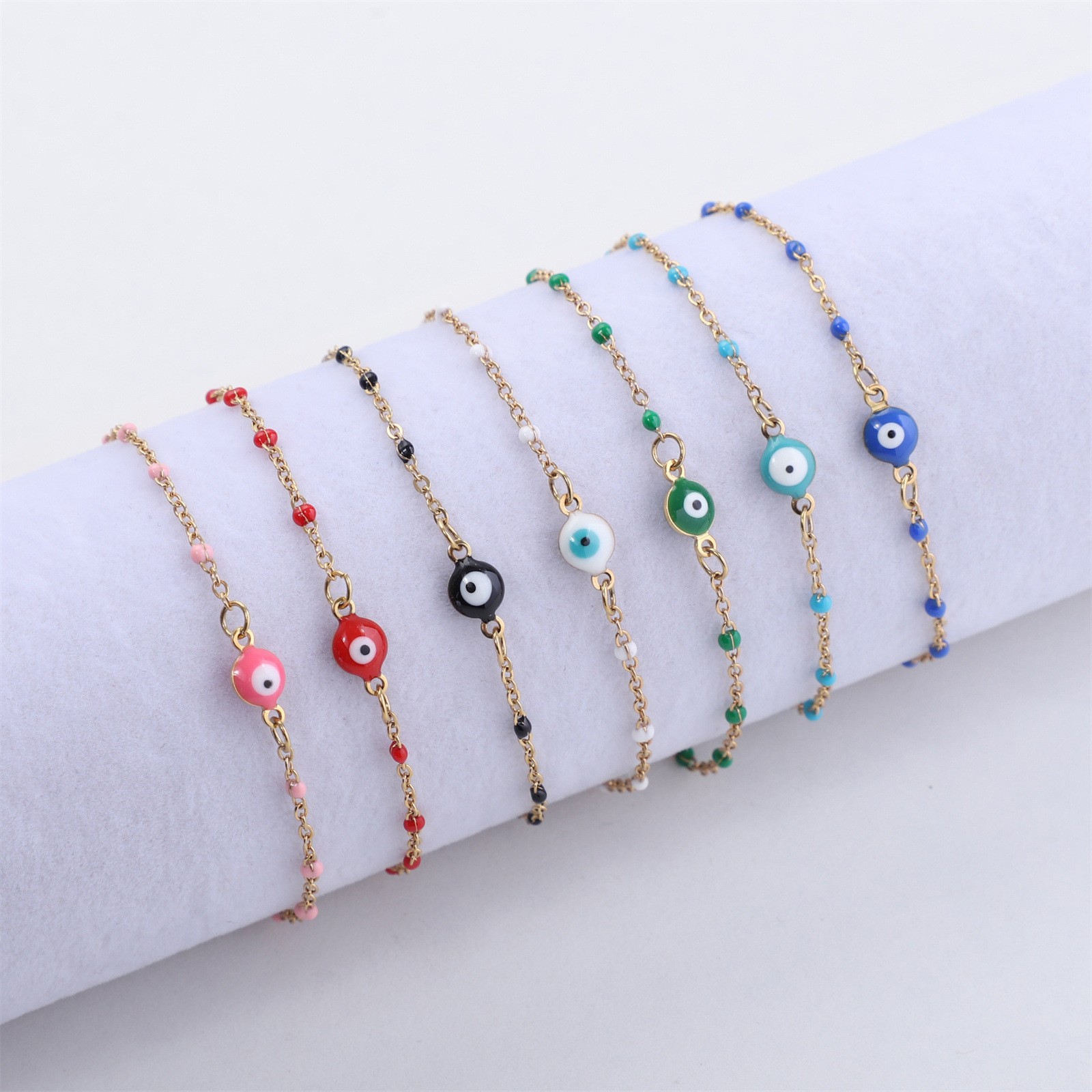 Bracelets en acier inoxydable, chaîne Rolo, plus de couleurs à choisir Environ 8 pouce, Vendu par brin