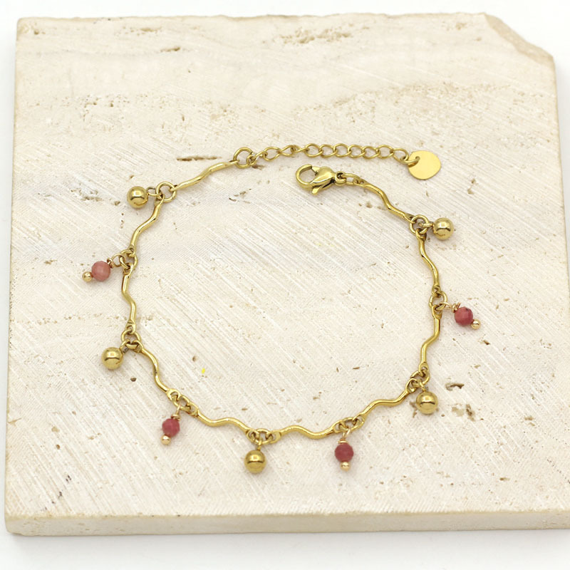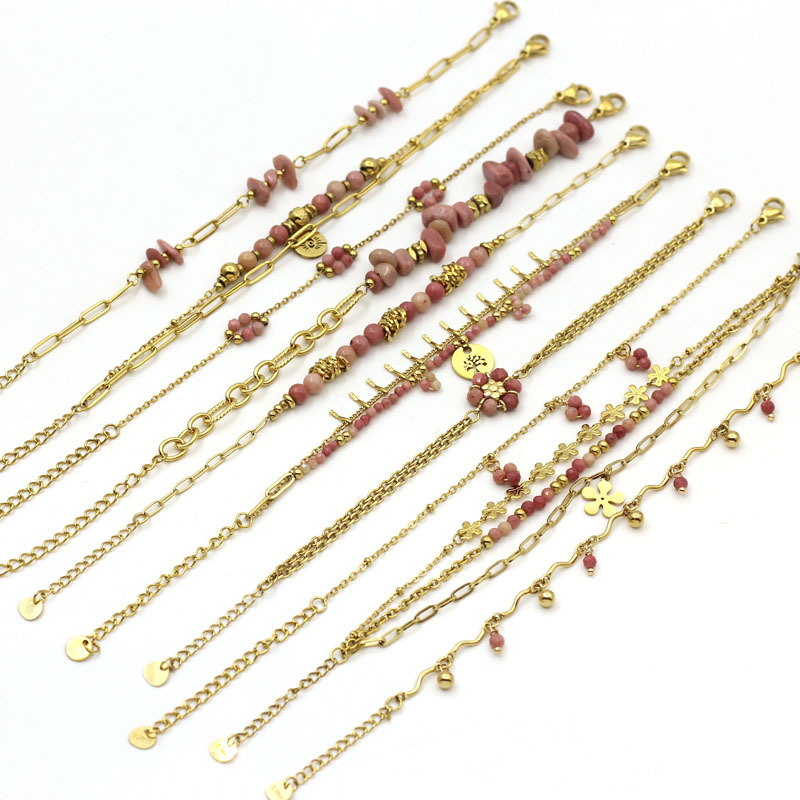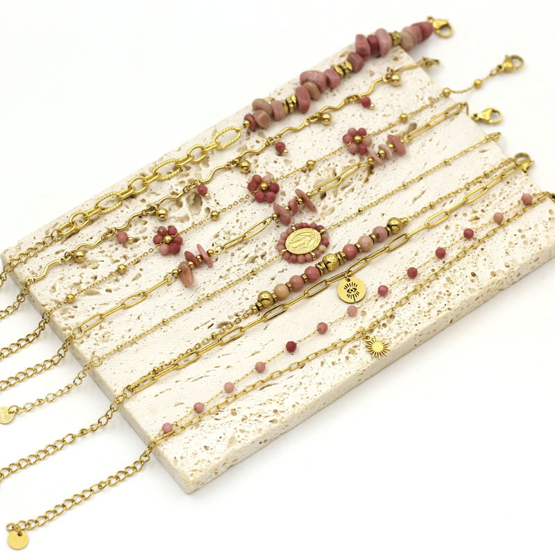 Acier inoxydable 304 bracelet, avec rhodonite, Placage de couleur d'or, bijoux de mode, plus de couleurs à choisir, Longueur:16 5 cm, Vendu par PC