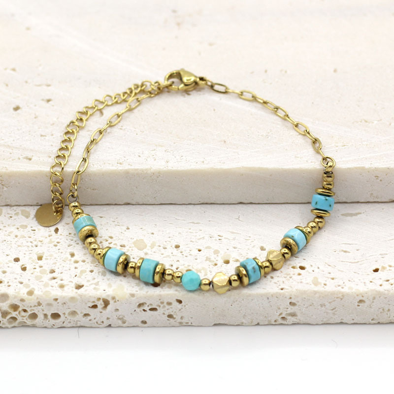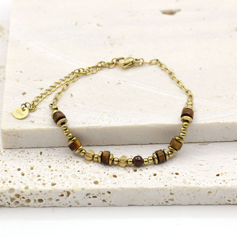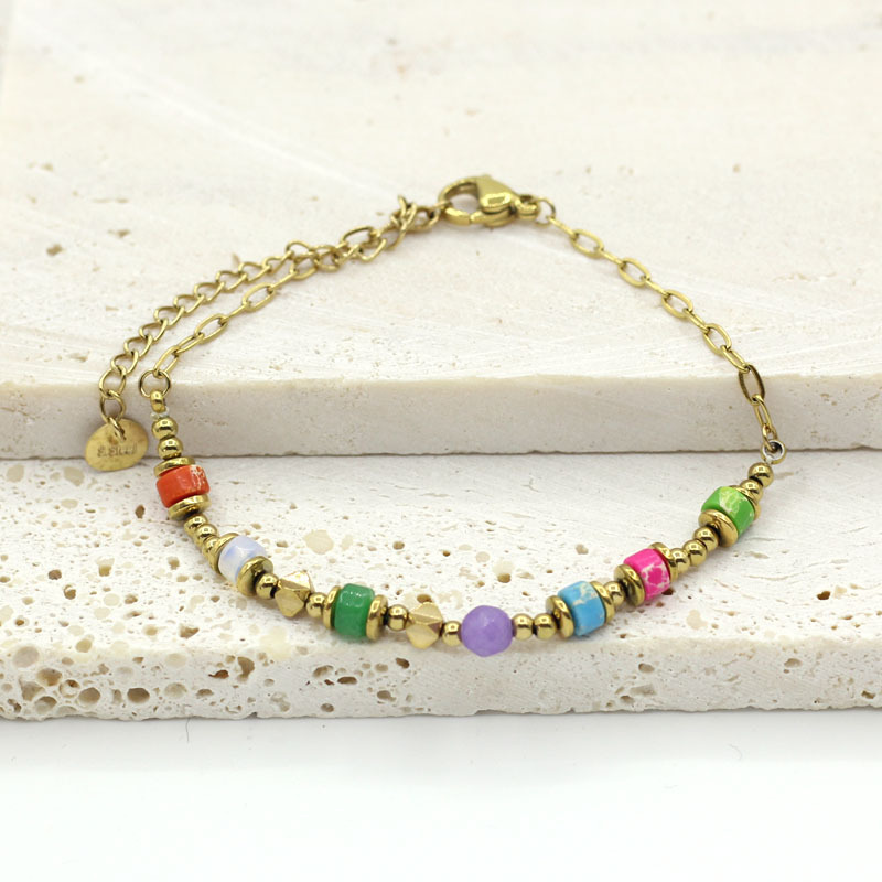 Acier inoxydable 304 bracelet, avec Pierre naturelle, Placage de couleur d'or, bijoux de mode, plus de couleurs à choisir, Vendu par PC