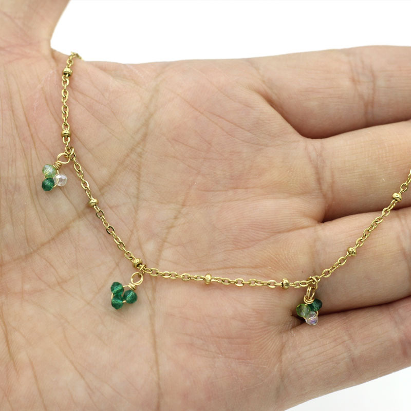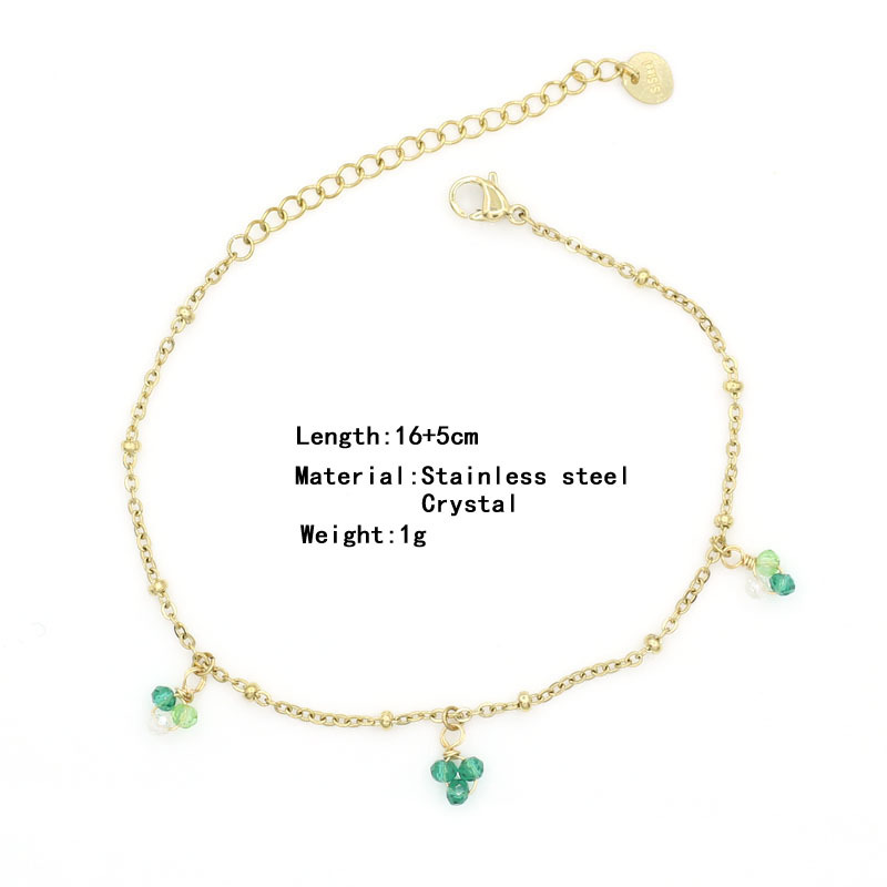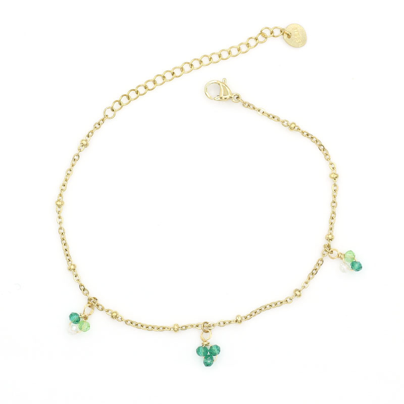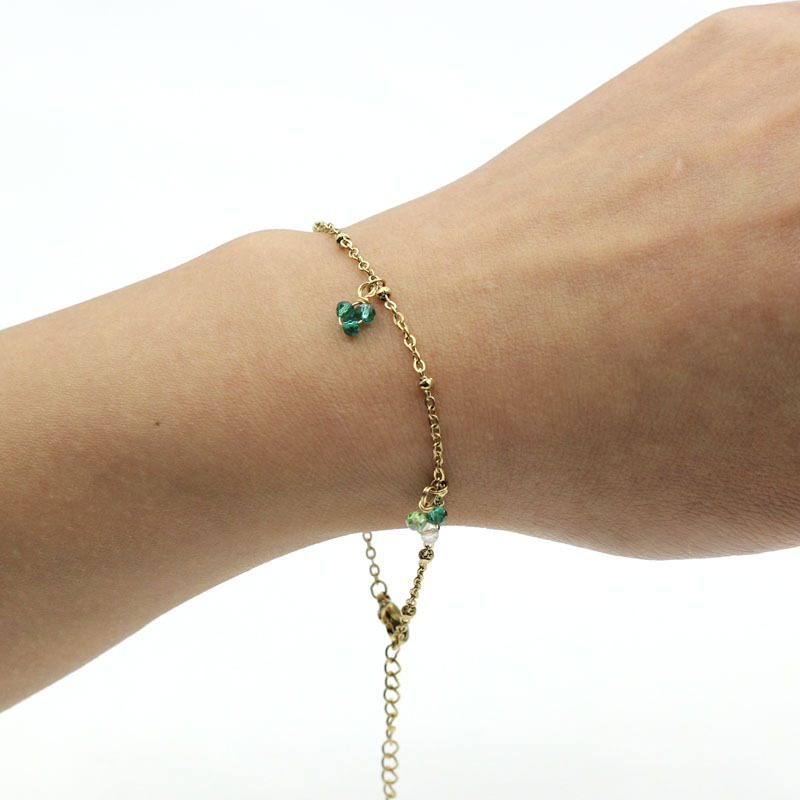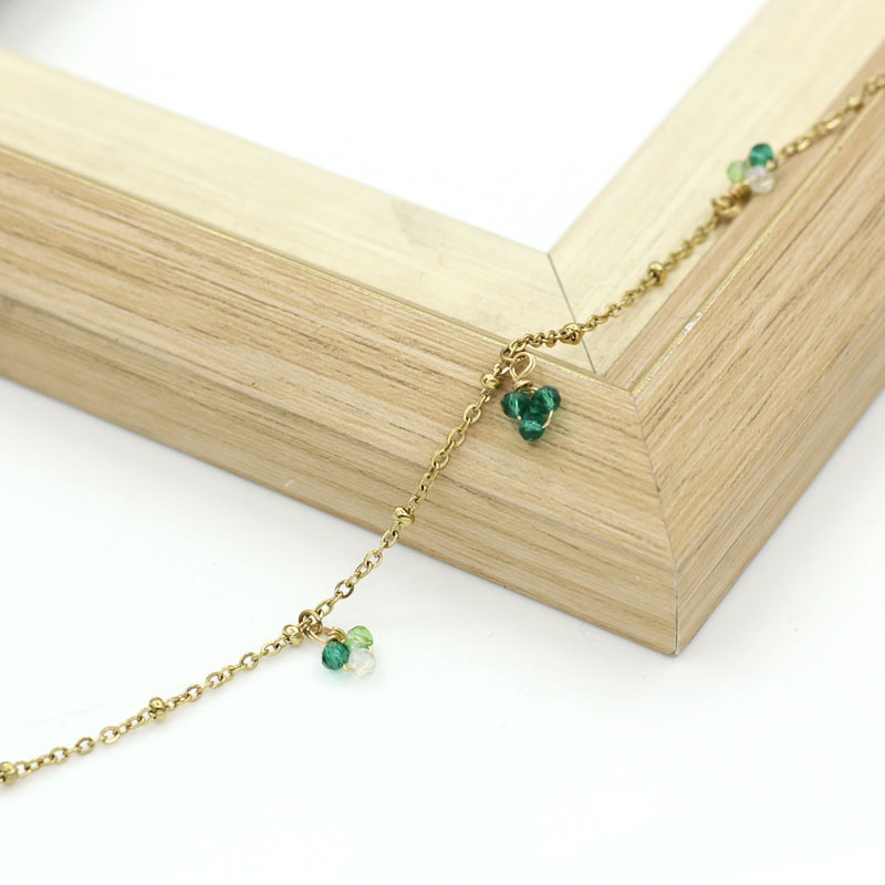 Acier inoxydable 304 bracelet, avec cristal, Placage de couleur d'or, bijoux de mode, vert, Vendu par PC