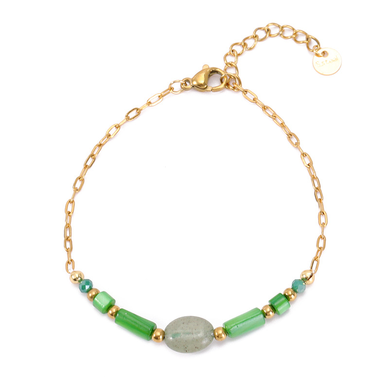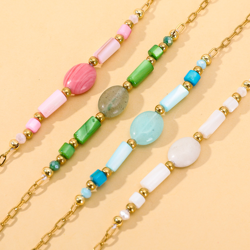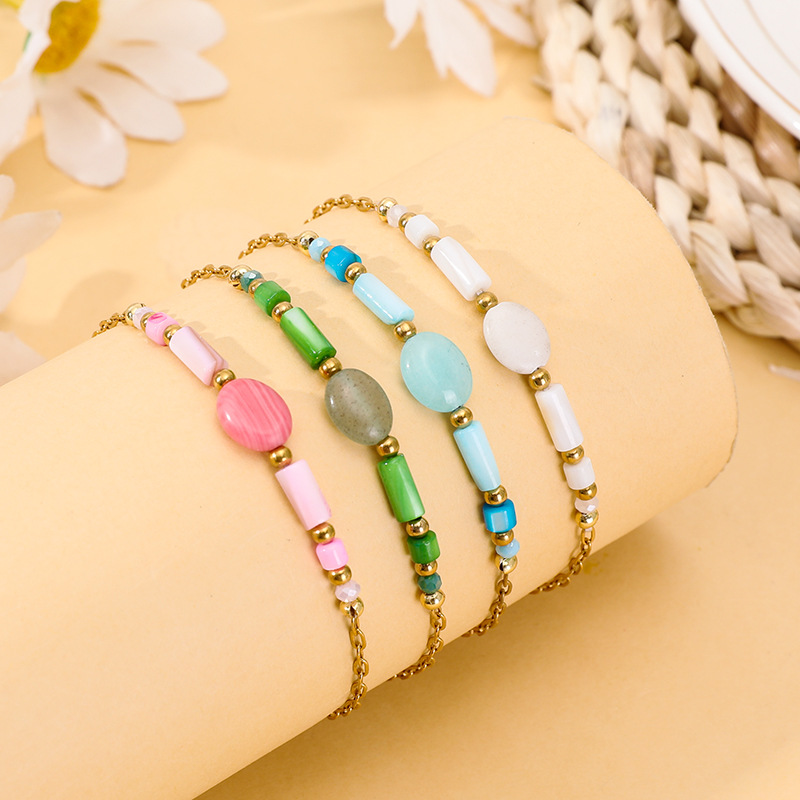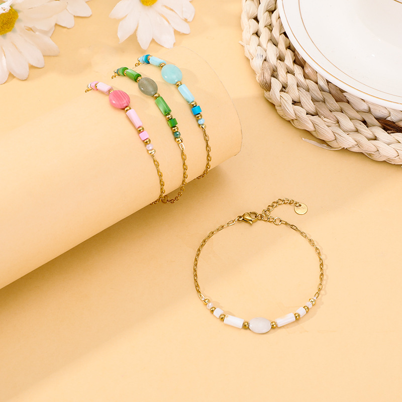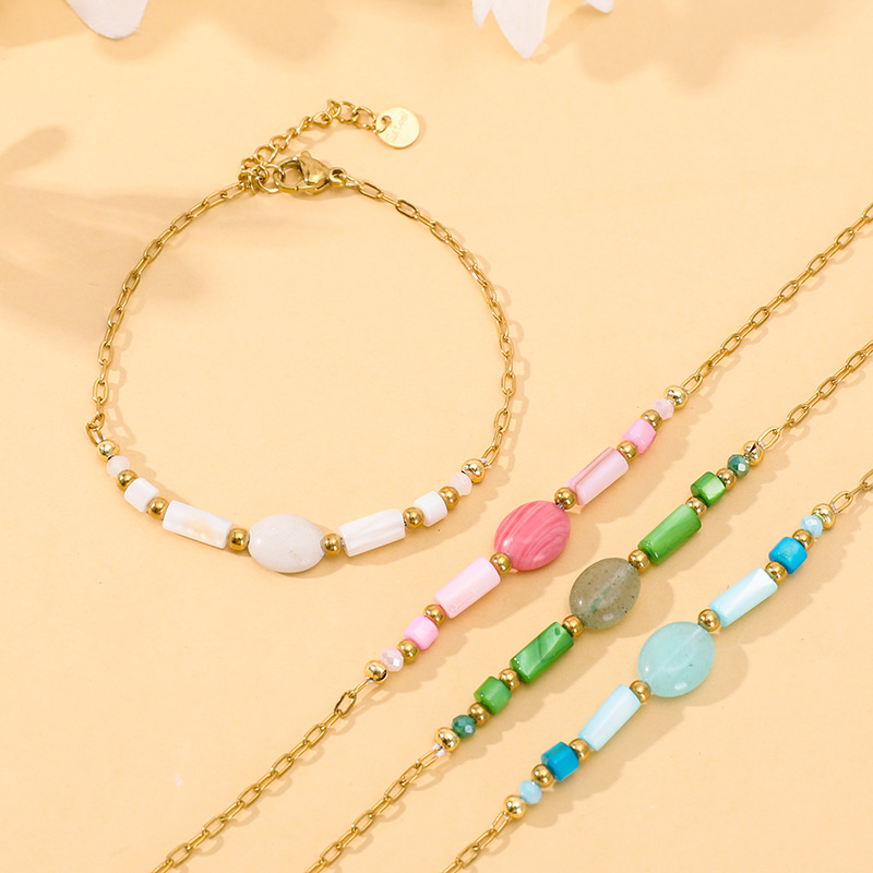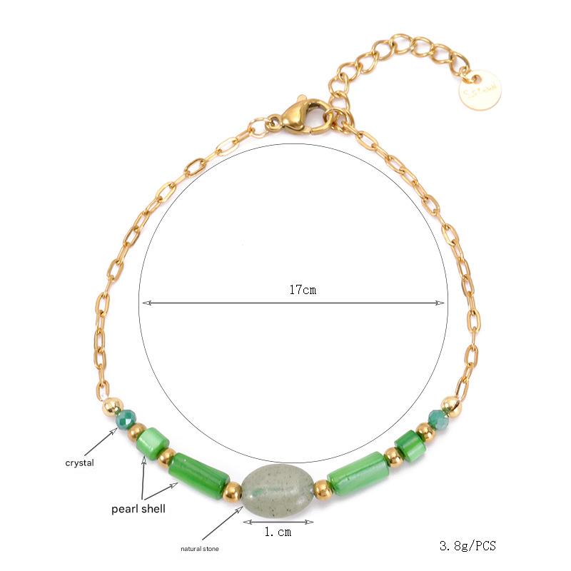 Acier inoxydable 304 bracelet, avec Pierre naturelle & Nacre perles & cristal, Placage de couleur d'or, bijoux de mode, plus de couleurs à choisir, grade A, Vendu par PC
