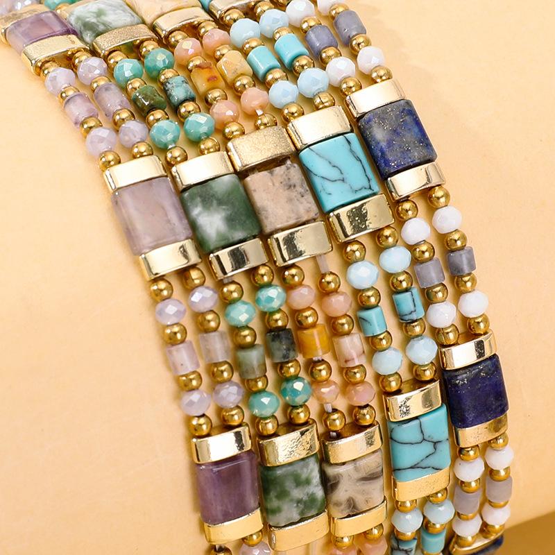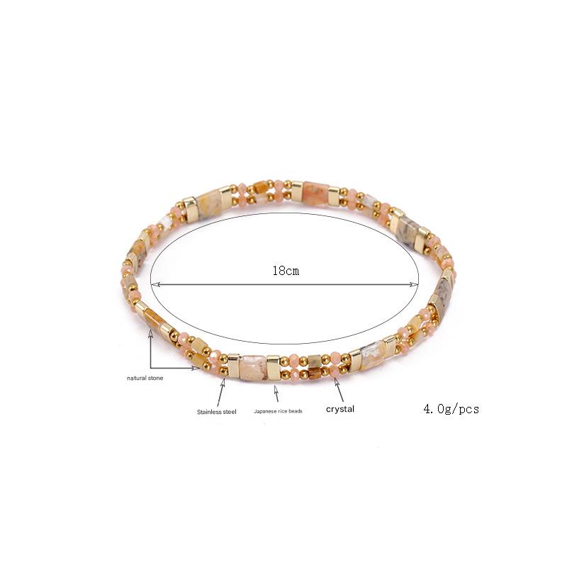 Acier inoxydable 304 bracelet, avec Seedbead & Pierre naturelle & cristal, Placage de couleur d'or, bijoux de mode, plus de couleurs à choisir, Vendu par PC