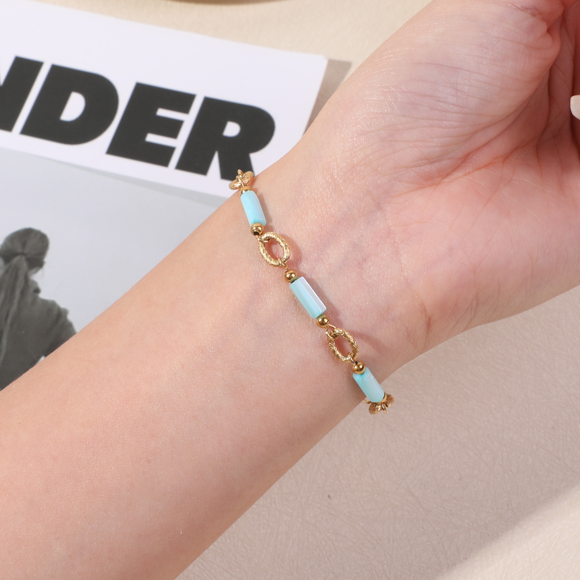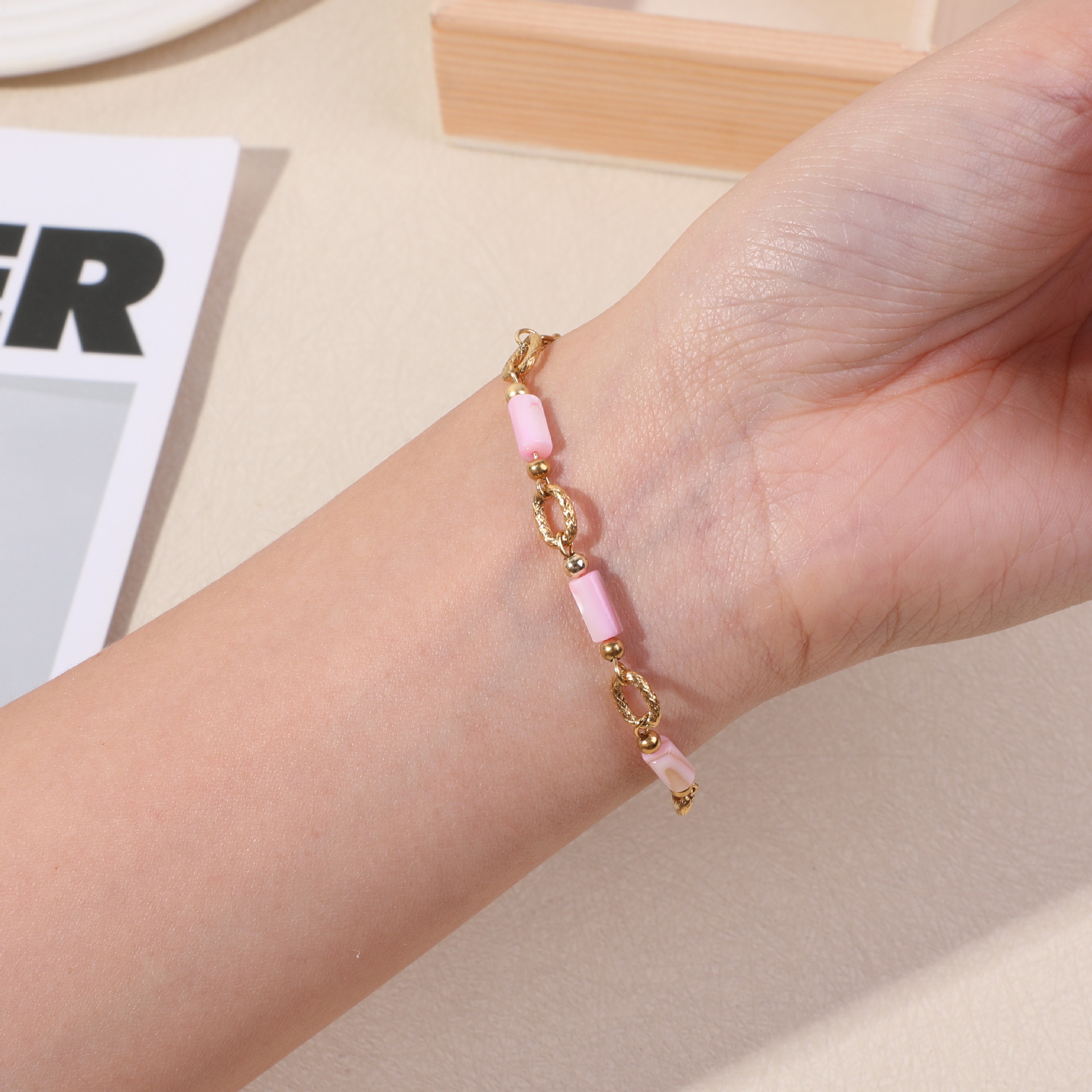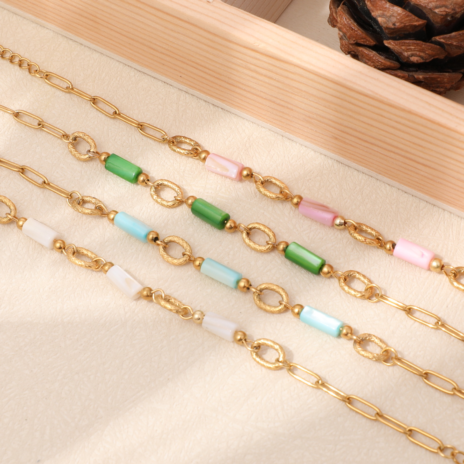 Acier inoxydable 304 bracelet, avec coquille, Placage de couleur d'or, bijoux de mode, plus de couleurs à choisir, Vendu par PC