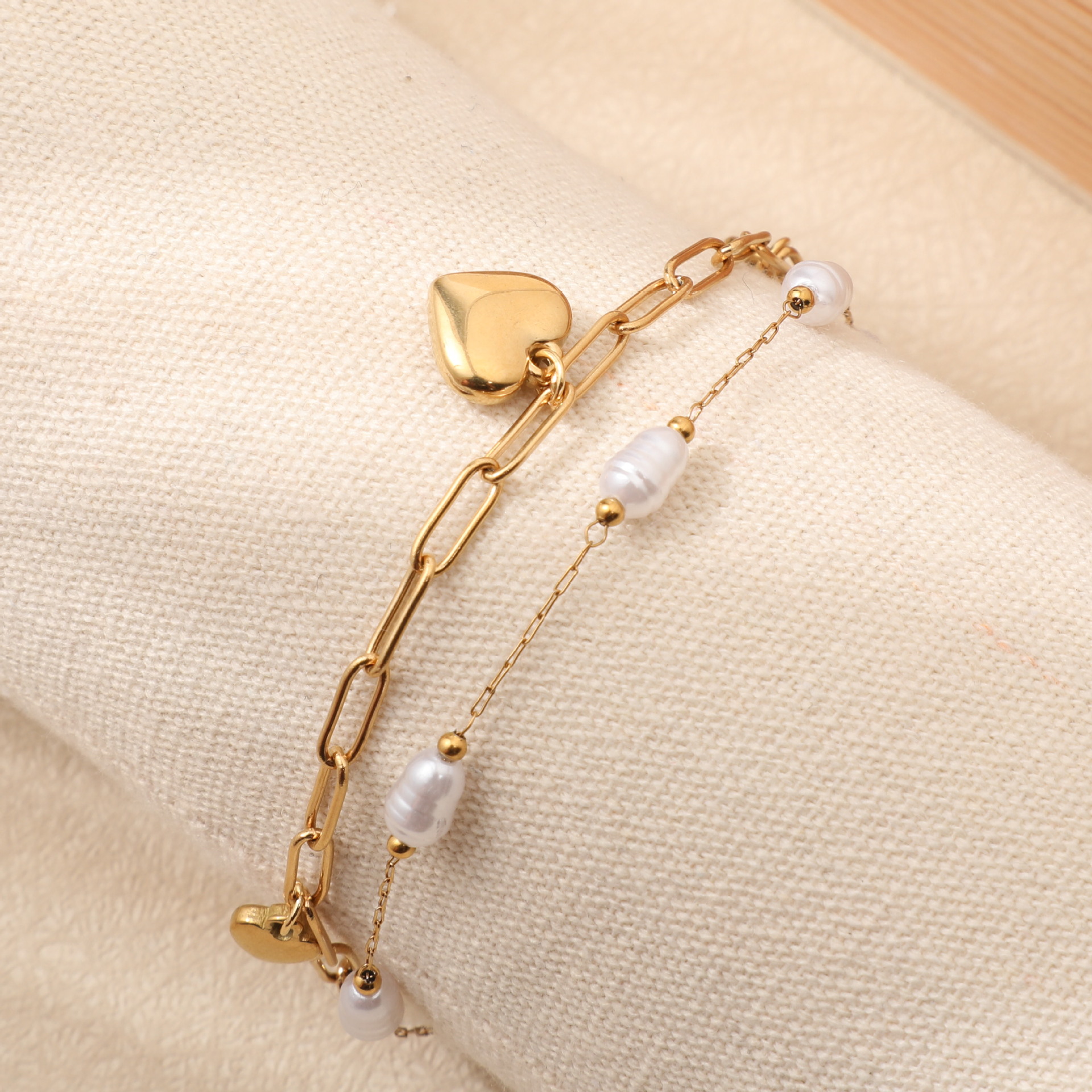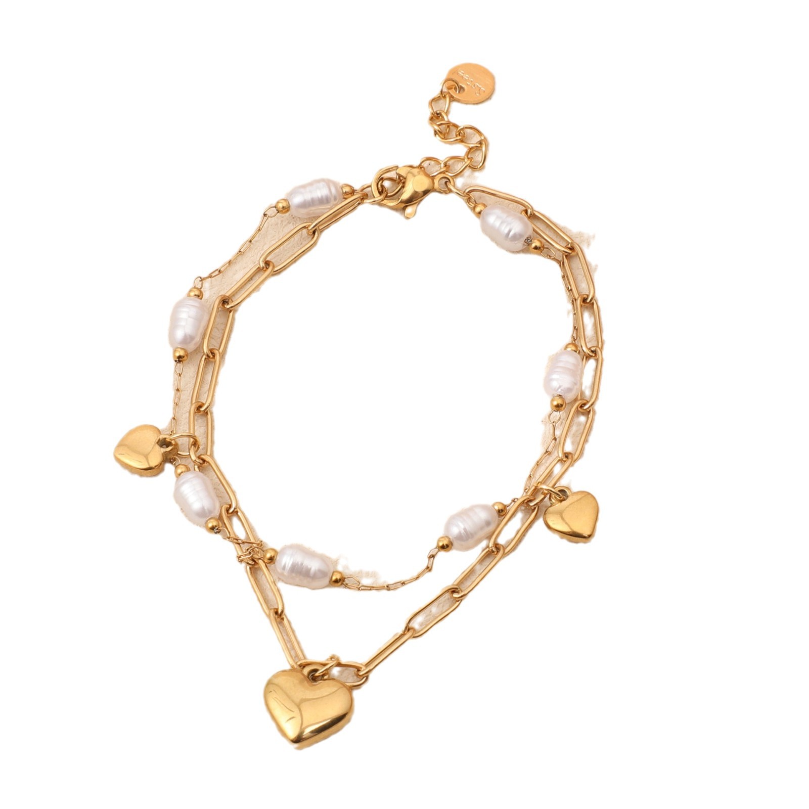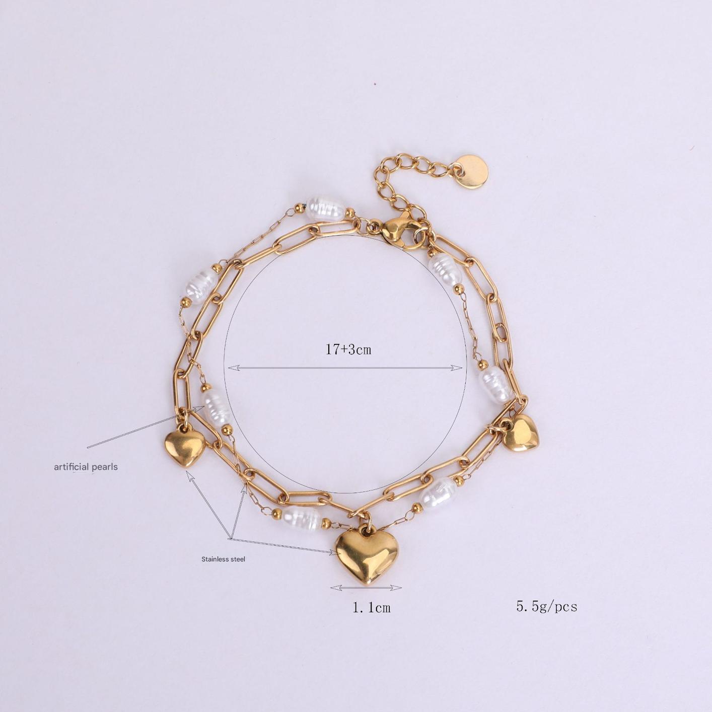 Acier inoxydable 304 bracelet, Placage de couleur d'or, bijoux de mode & multicouche & perle d'imitation, plus de couleurs à choisir, Vendu par PC