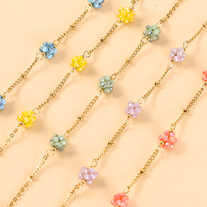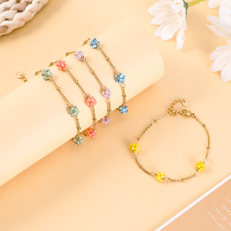 Bracelet en acier inoxydable, fleur, bracelet à breloques & chaîne ovale, couleur originale  Environ 9 pouce, Vendu par brin