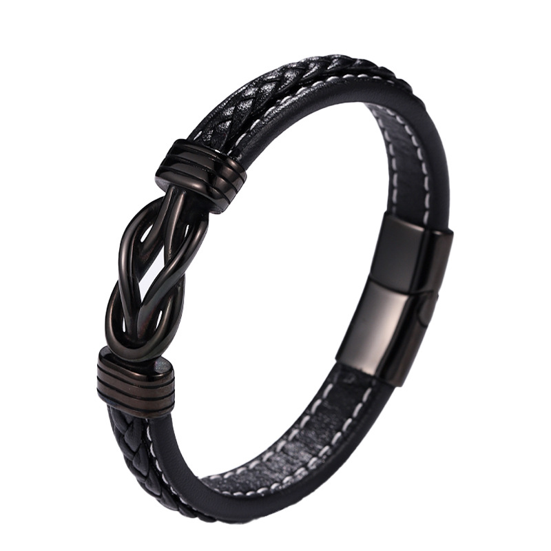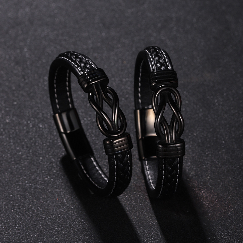 Acier inoxydable 304 bracelet, avec Microfibre PU, Infini, poli, normes différentes pour le choix & pour homme, noire, Vendu par PC