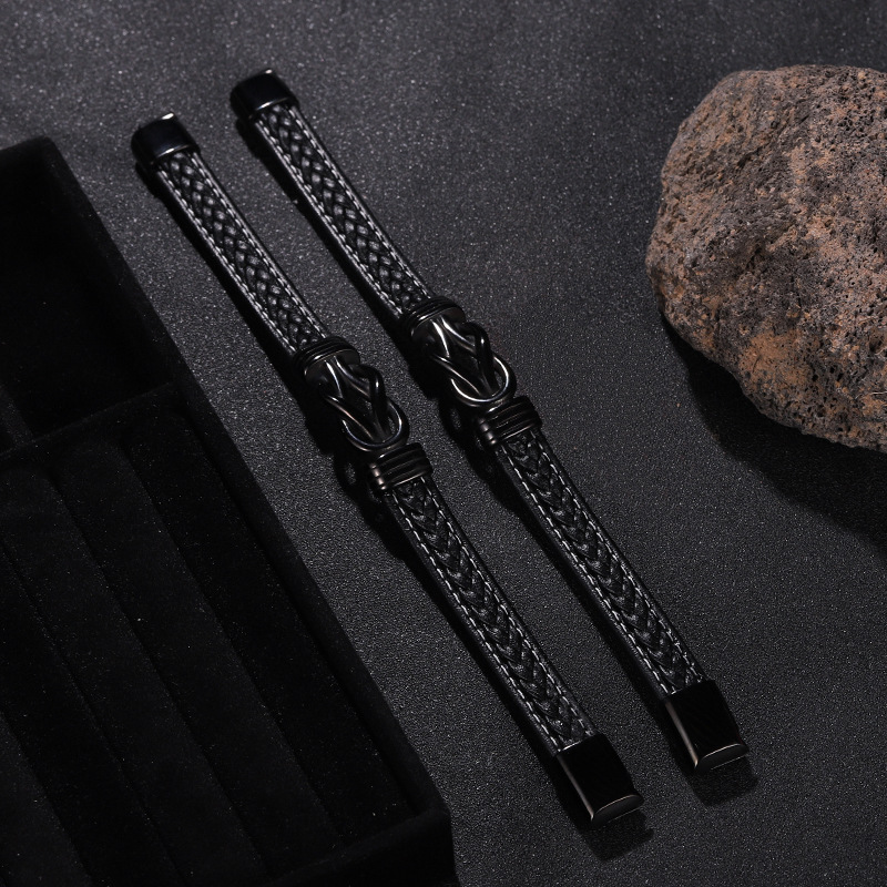 bracelet de cordon en PU , alliage de zinc, avec cuir PU & Acier inoxydable 304, fait à la main, pour homme, noire, Vendu par PC