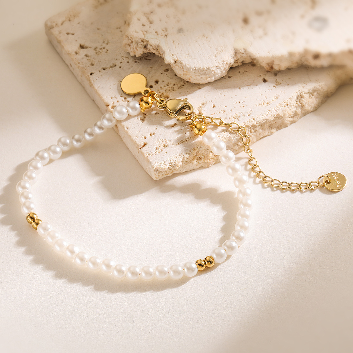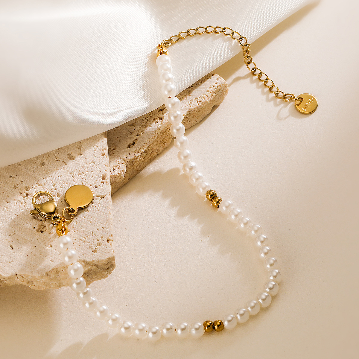Acier inoxydable 304 bracelet, avec perle de plastique, Plaqué or 18K, bijoux de mode & pour femme, Vendu par PC