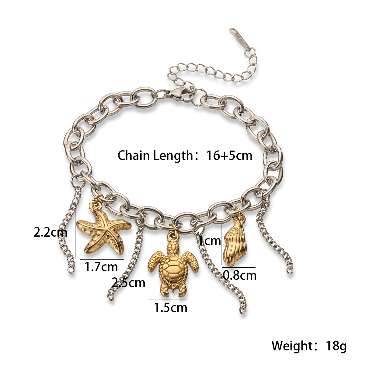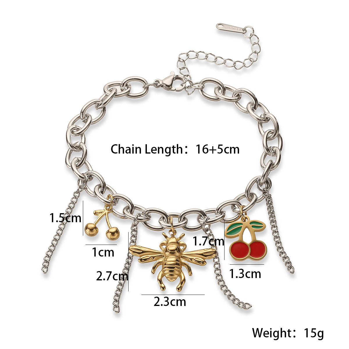 Bracelet en acier inoxydable, avec 1lnch chaînes de rallonge, bracelet à breloques & chaîne ovale, couleur originale   Environ 7.5 pouce, Vendu par brin