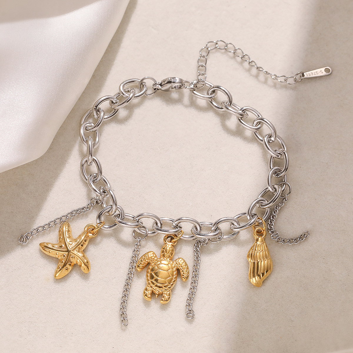 Bracelet en acier inoxydable, étoile, bracelet à breloques & chaîne ovale, couleur originale Environ 8 pouce, Vendu par brin