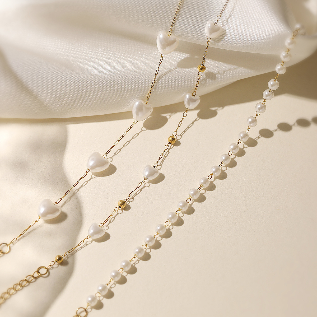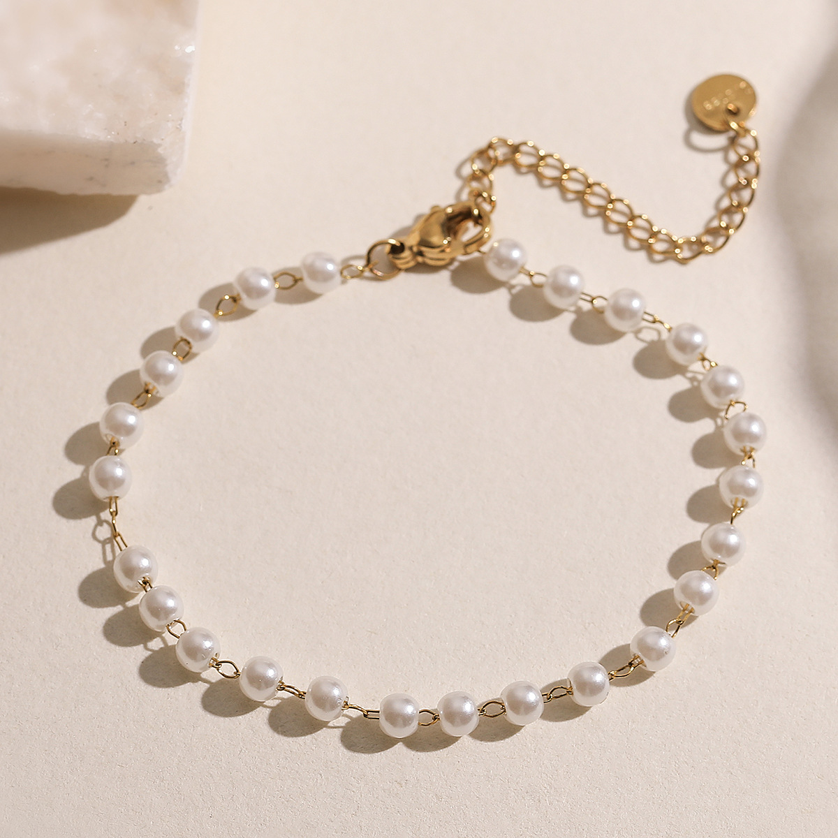 Acier inoxydable 304 bracelet, avec perle de plastique, Placage de couleur d'or, styles différents pour le choix & pour femme, Vendu par PC