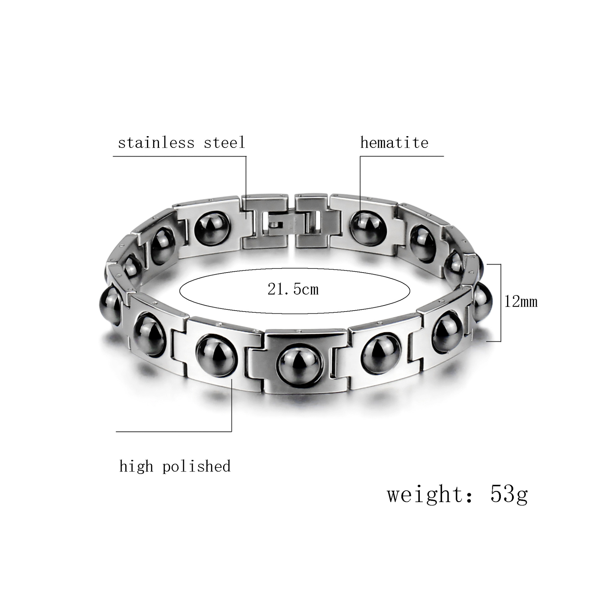 Acier inoxydable 304 bracelet, avec Hématite, poli, bijoux de mode & pour homme, 215x12mm, Vendu par PC