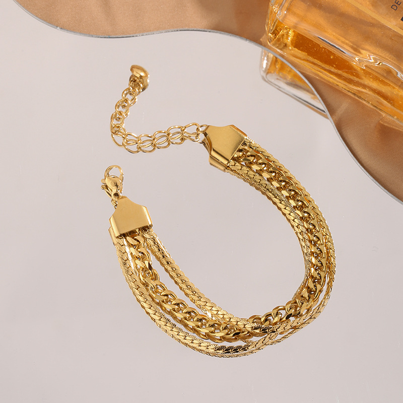Acier inoxydable 304 bracelet, Placage de couleur d'or, trois couches & bijoux de mode & pour femme, Longueur:Environ 6-7 pouce, Vendu par PC