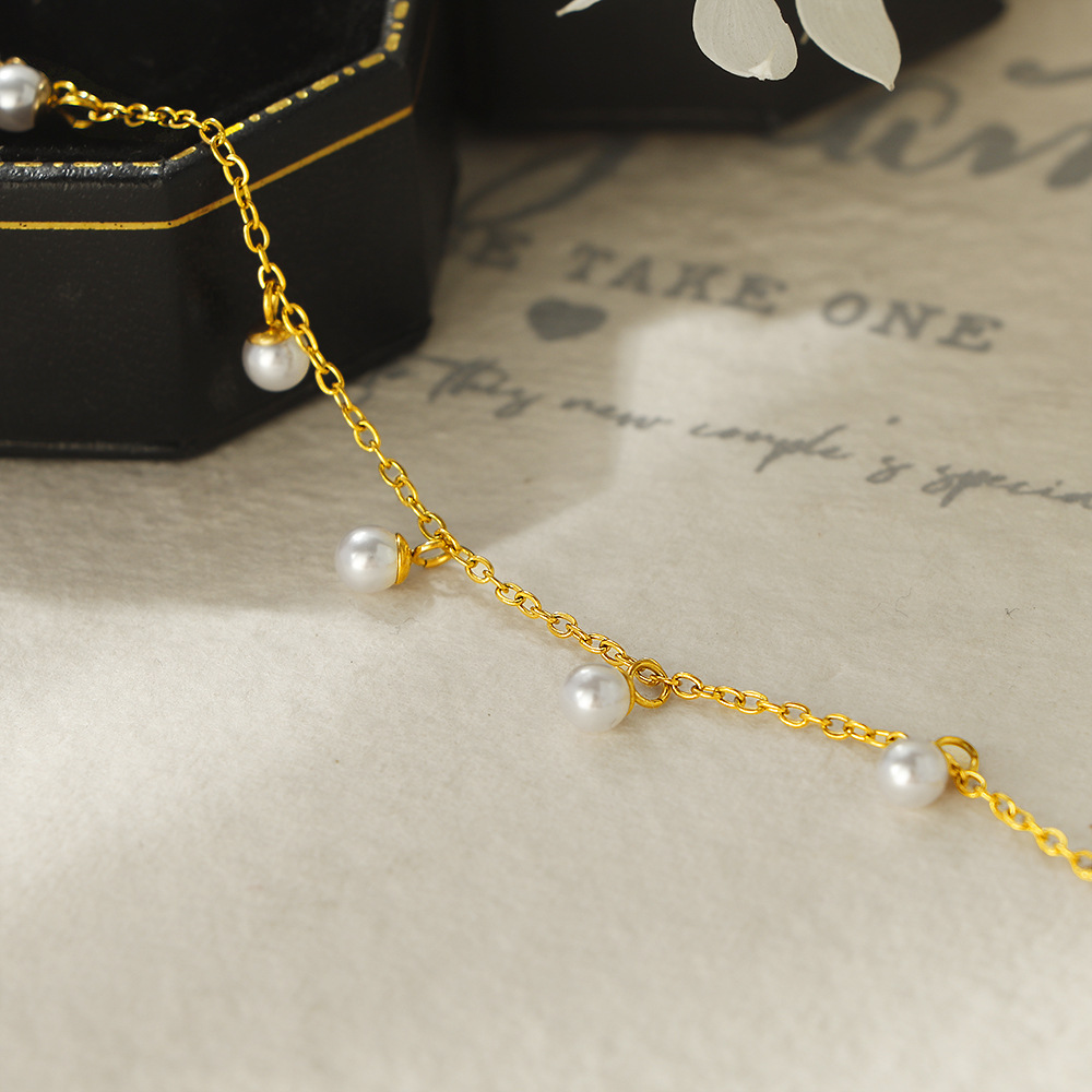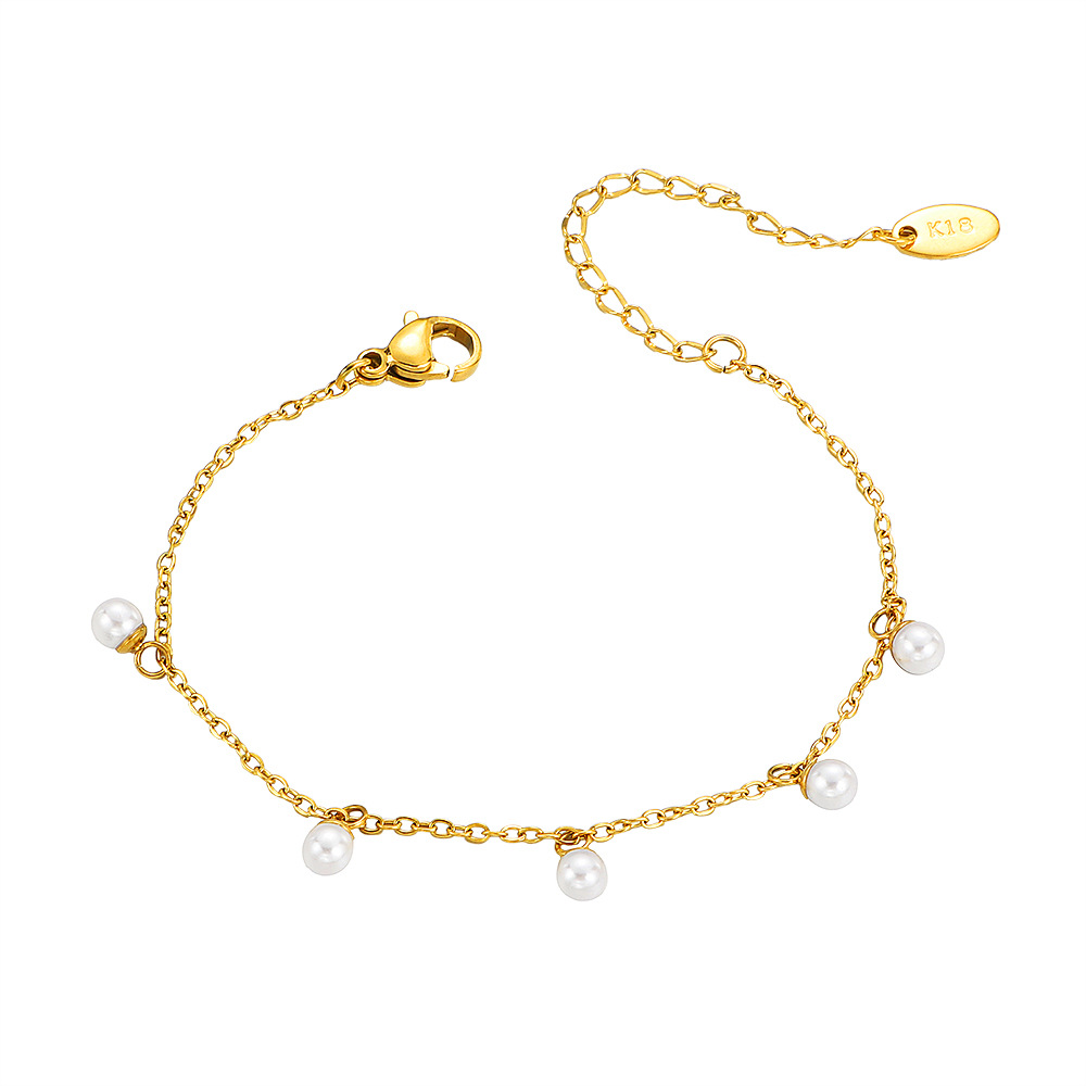 Bracelet en acier inoxydable, Acier inoxydable 304, avec perle de plastique, Placage de couleur d'or, bijoux de mode & émail, doré, Vendu par PC