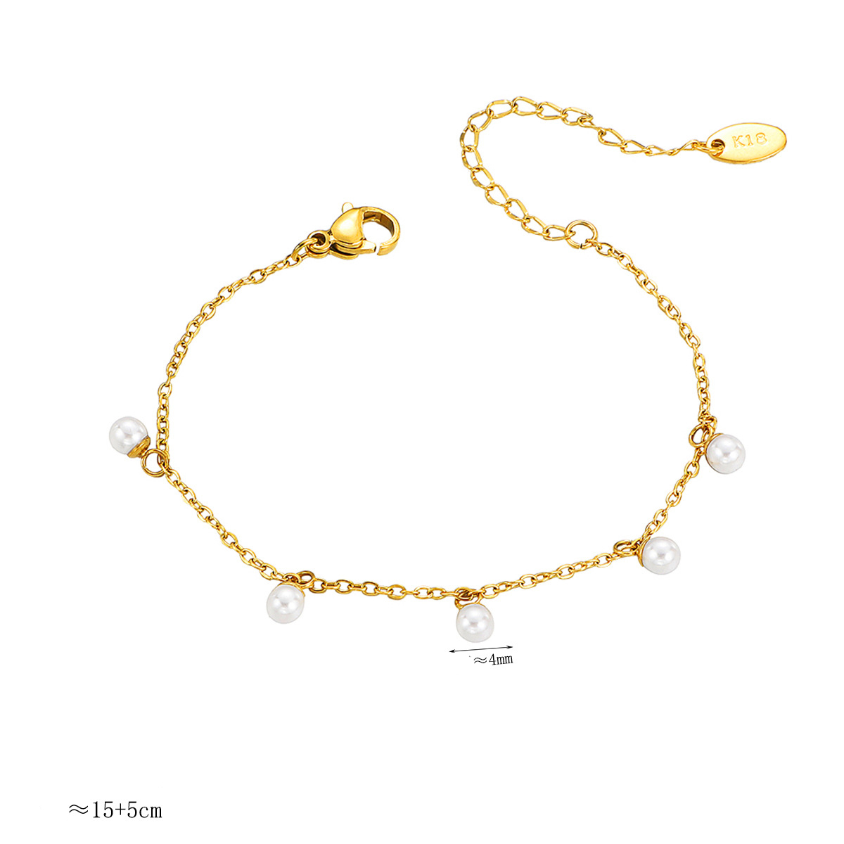 Acier inoxydable 304 bracelet, avec perle de plastique, avec 5cm chaînes de rallonge, Placage de couleur d'or, bijoux de mode & pour femme, Longueur:Environ 15 cm, Vendu par PC