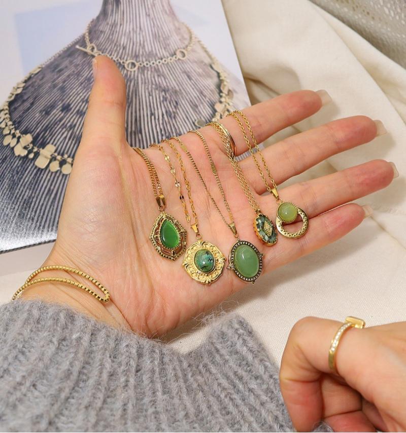 Acier inoxydable 304 collier, avec Pierre naturelle, Plaqué or 18K, bijoux de mode & styles différents pour le choix & pour femme, Vendu par PC