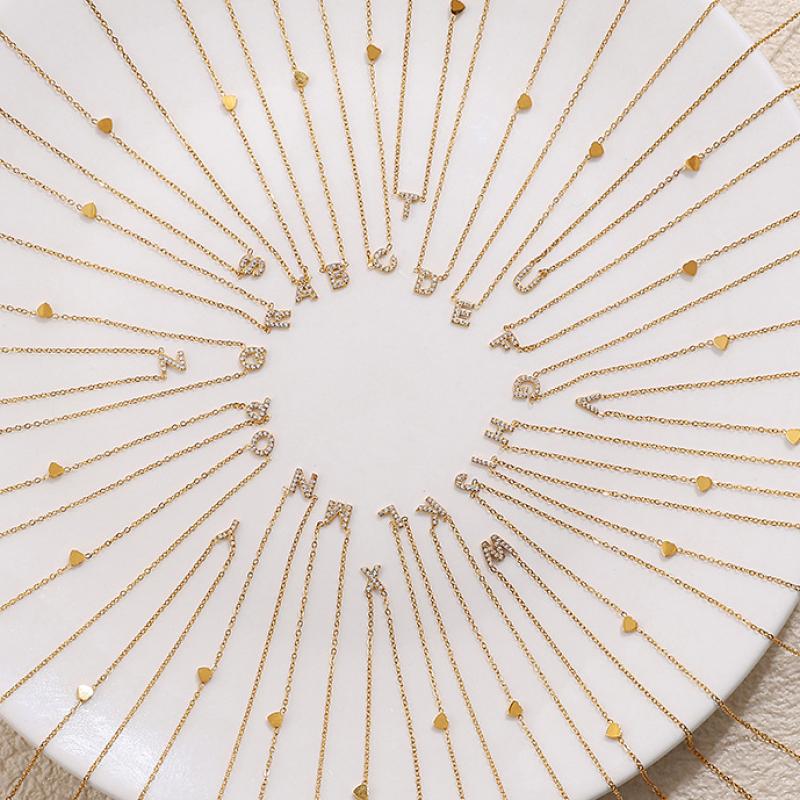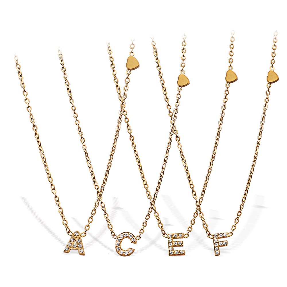 Acier inoxydable 304 collier, Lettre d’alphabet, Plaqué or 18K, modèles différents pour le choix & pavé de micro zircon & pour femme, Vendu par PC