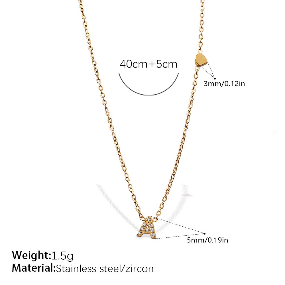 Collier en acier inoxydable Zircon, avec 5cm chaînes de rallonge, Polissage fin & chaîne ovale & avec le motif de lettre & pour femme & avec zircone cubique, couleur originale, 25mm Environ 17.8 pouce, Vendu par brin