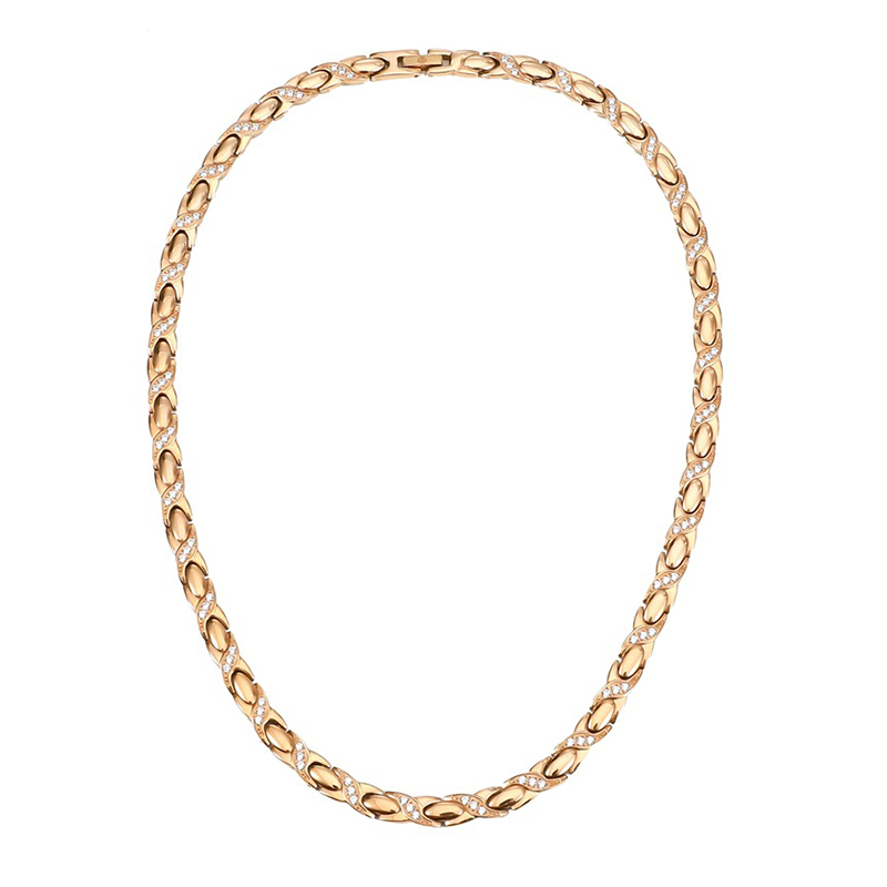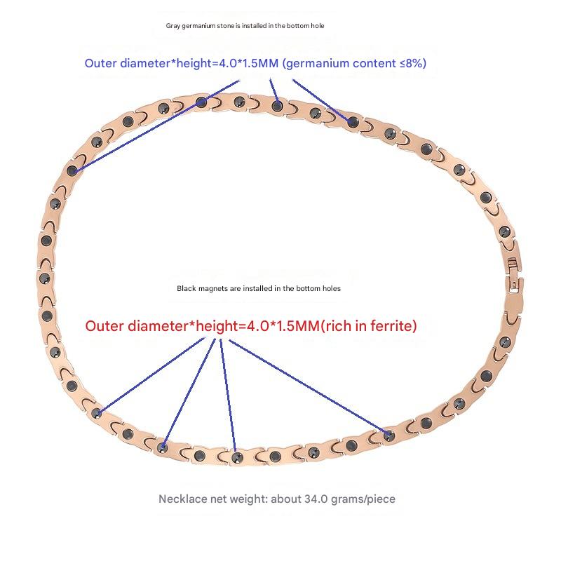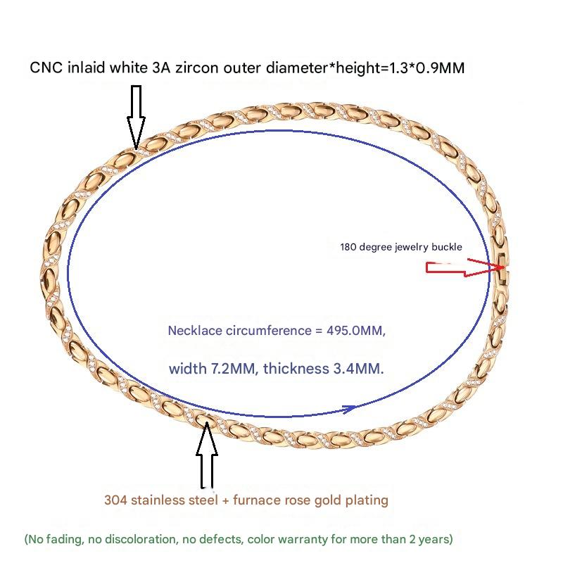 Acier inoxydable 304 collier, avec Pierre de Noir-Magnetic, Placage ionique sous vide, pavé de micro zircon & pour femme, couleur or rose, Longueur:Environ 19.5 pouce, Vendu par PC