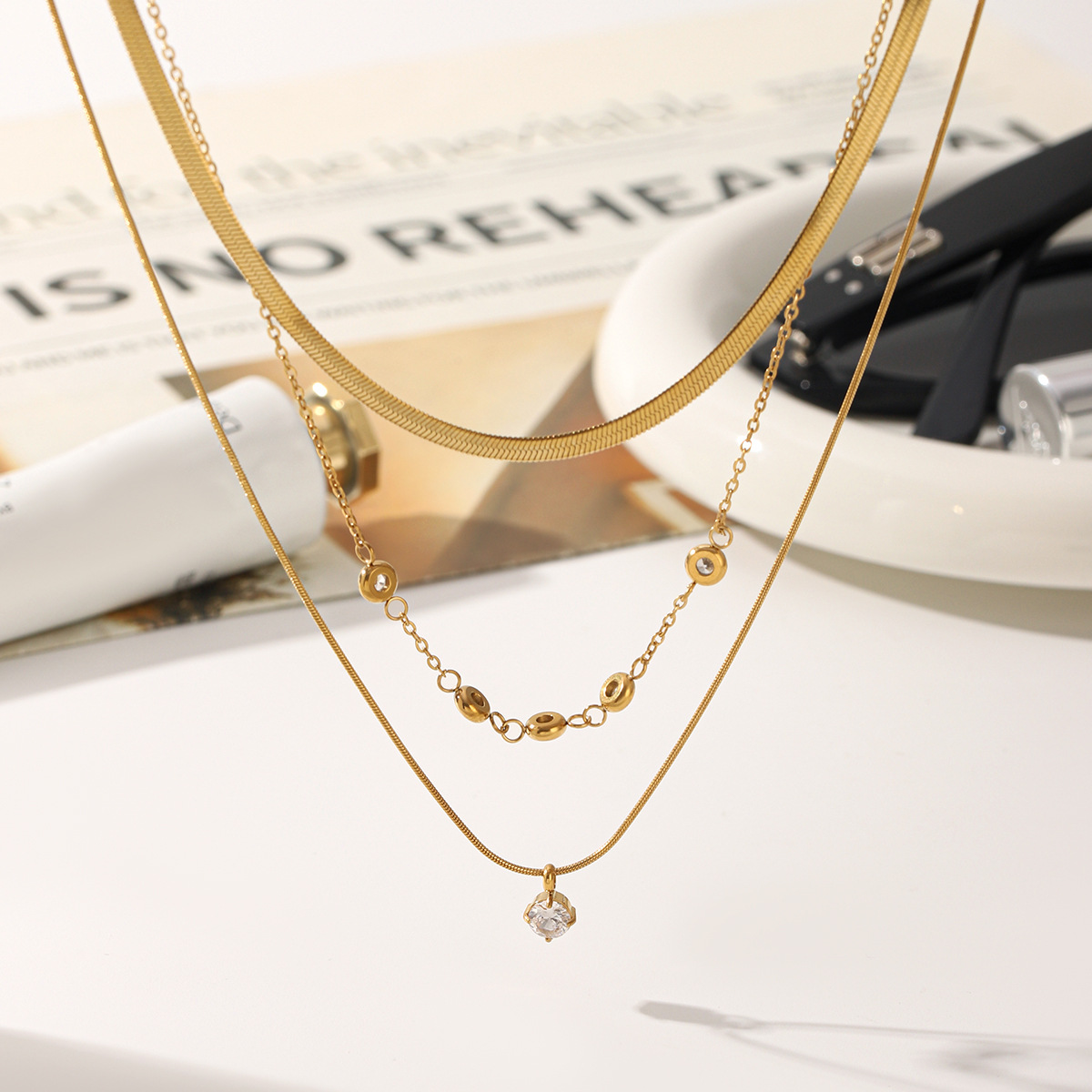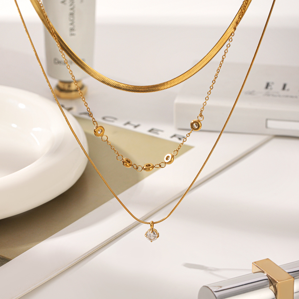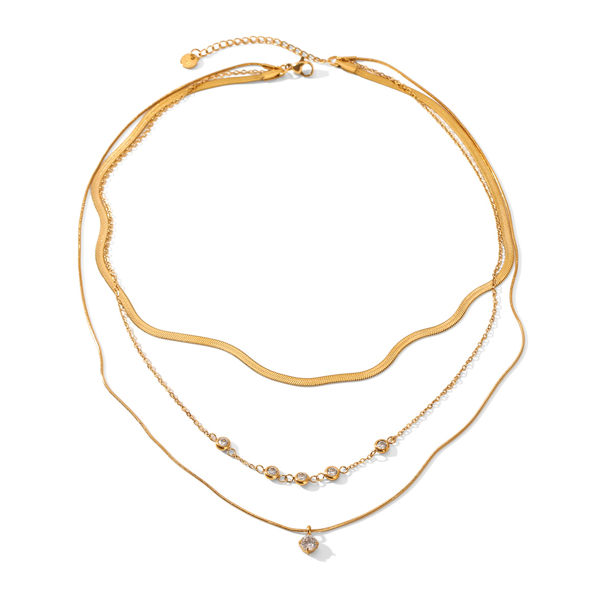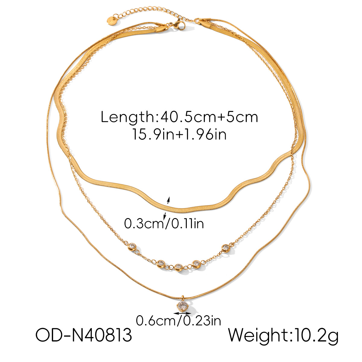 Acier inoxydable 304 collier, Placage de couleur d'or, multicouche & pavé de micro zircon & pour femme, Vendu par PC