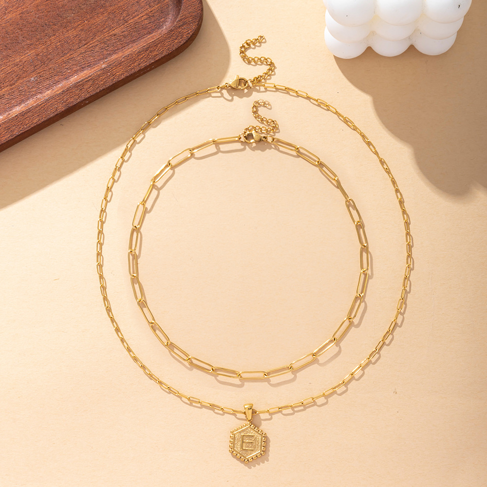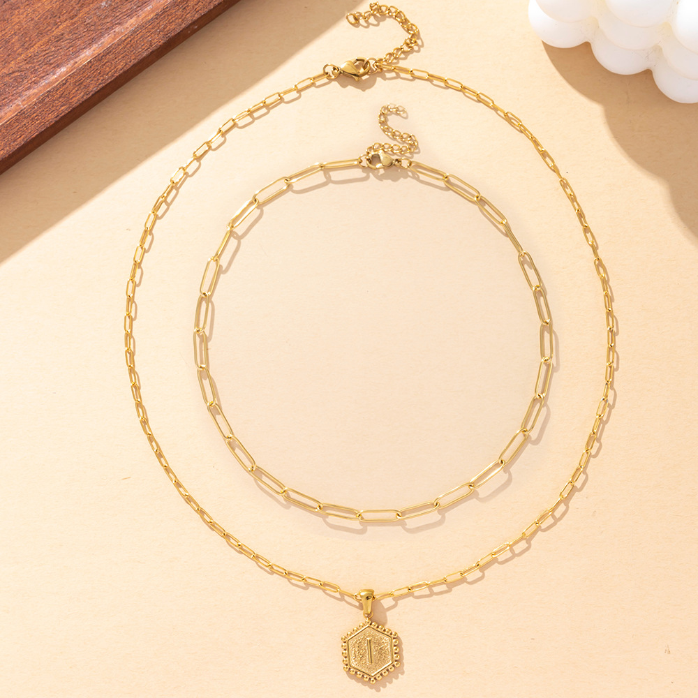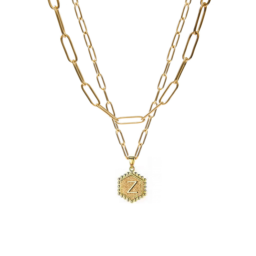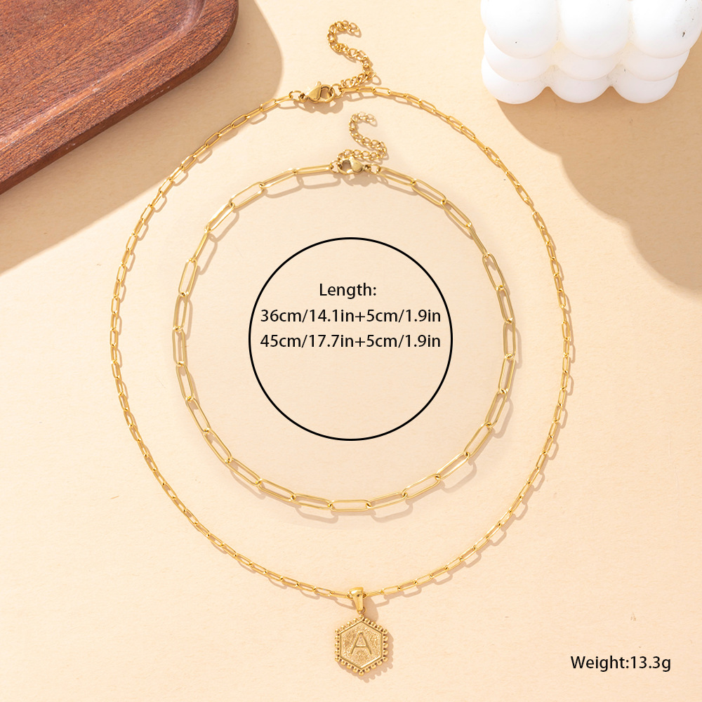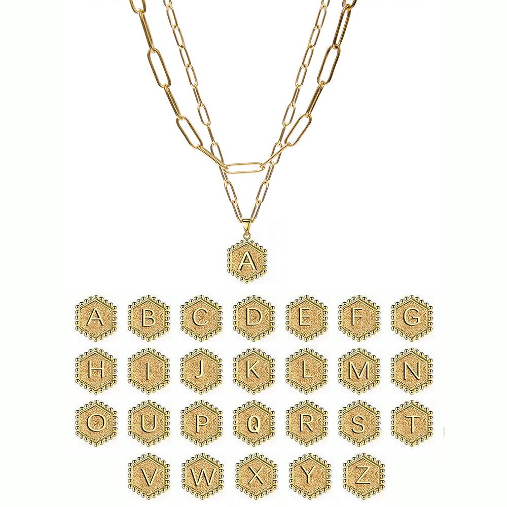 Acier inoxydable 304 collier, Lettre d’alphabet, Placage de couleur d'or, Double couche & unisexe & chaîne ovale & modèles différents pour le choix, Vendu par PC