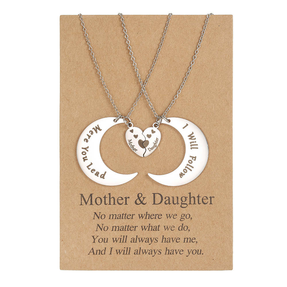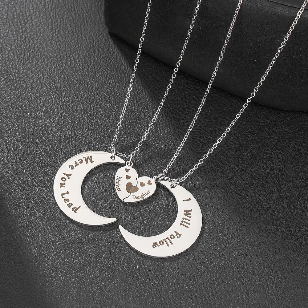 Acier inoxydable 304 collier, avec 5cm chaînes de rallonge, lune, 2 pièces & avec le motif de lettre & pour femme, couleur originale, Longueur:Environ 45 cm, Vendu par fixé