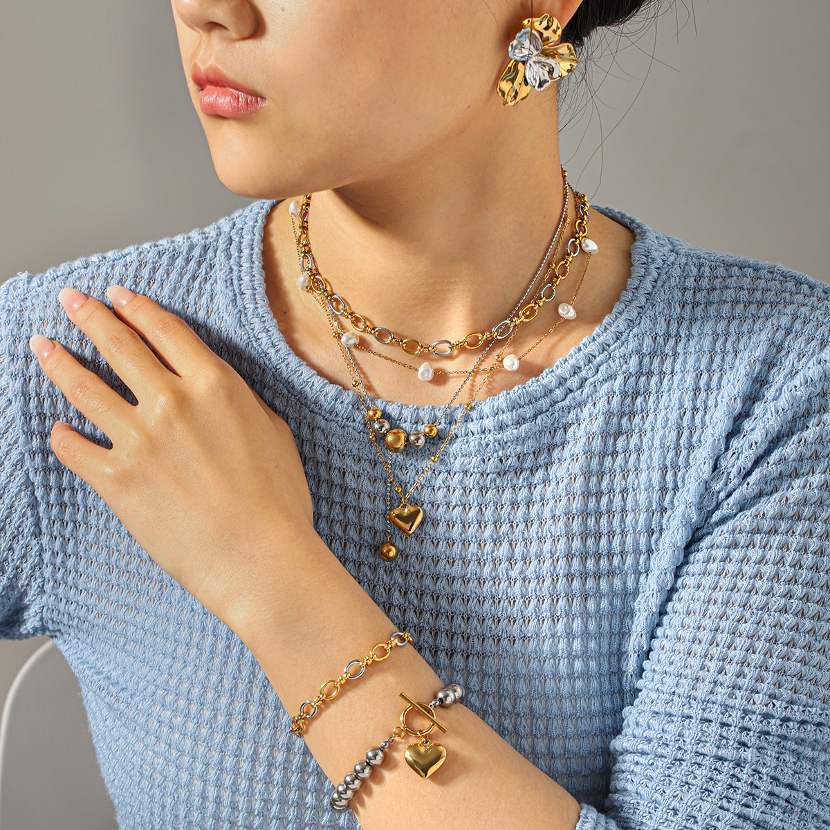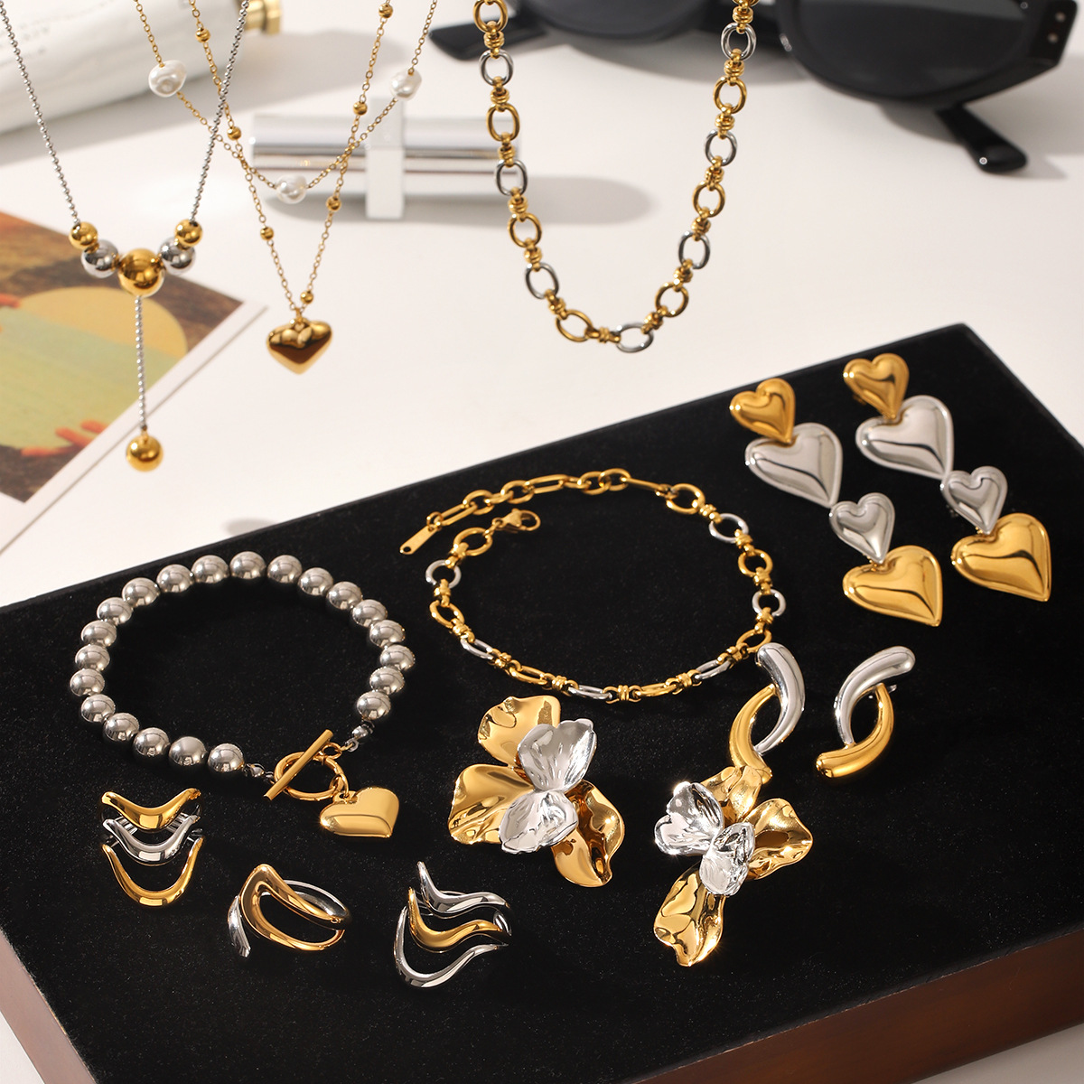Acier inoxydable 304 parure de bijoux, avec perle de plastique, Placage, styles différents pour le choix & pour femme, Vendu par PC