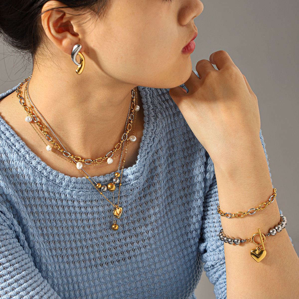 Parures de bijoux en acier inoxydable, boucle d'oreille & collier, cadnas, Placage, chaîne ovale & pour femme, plus de couleurs à choisir   Environ 18 pouce, Vendu par fixé