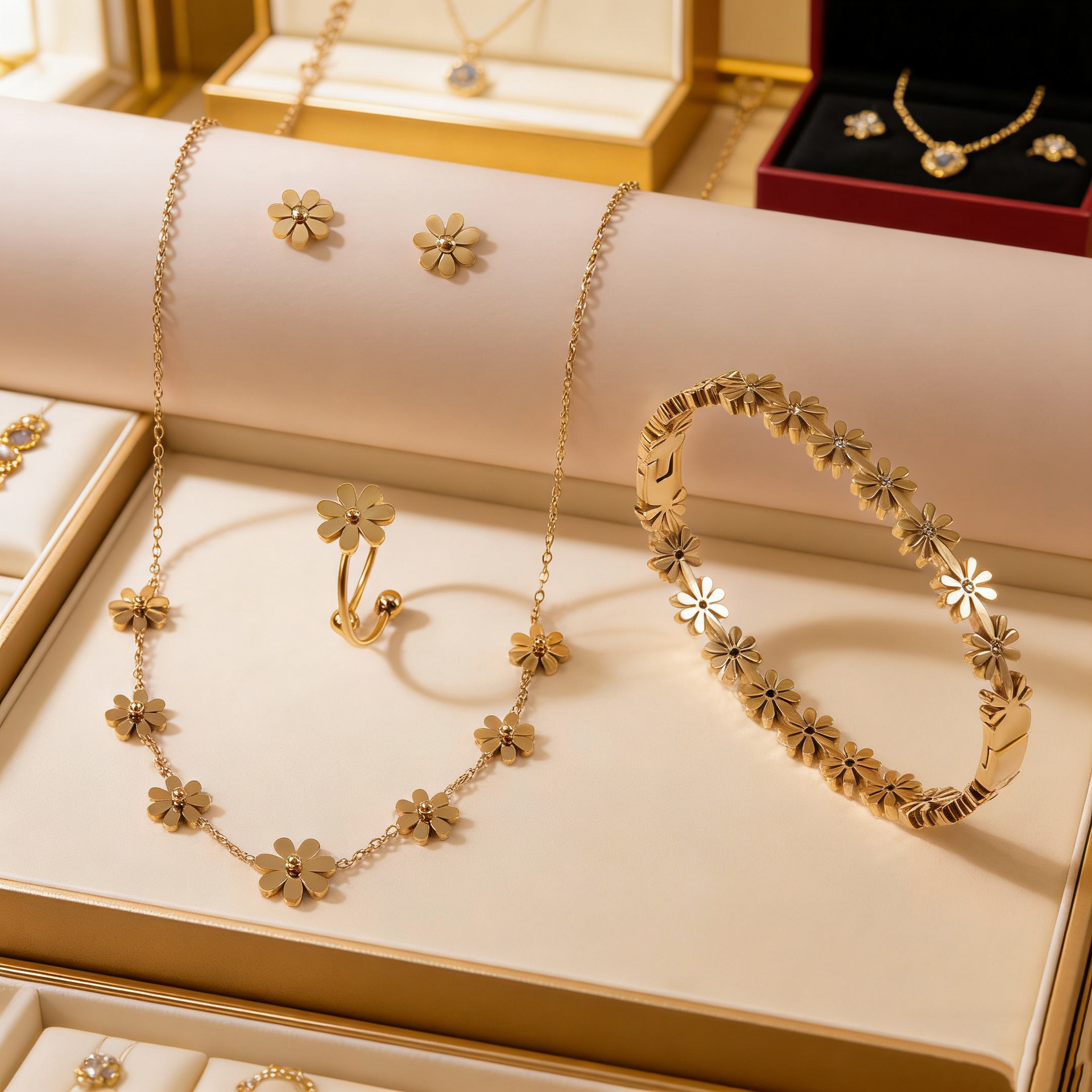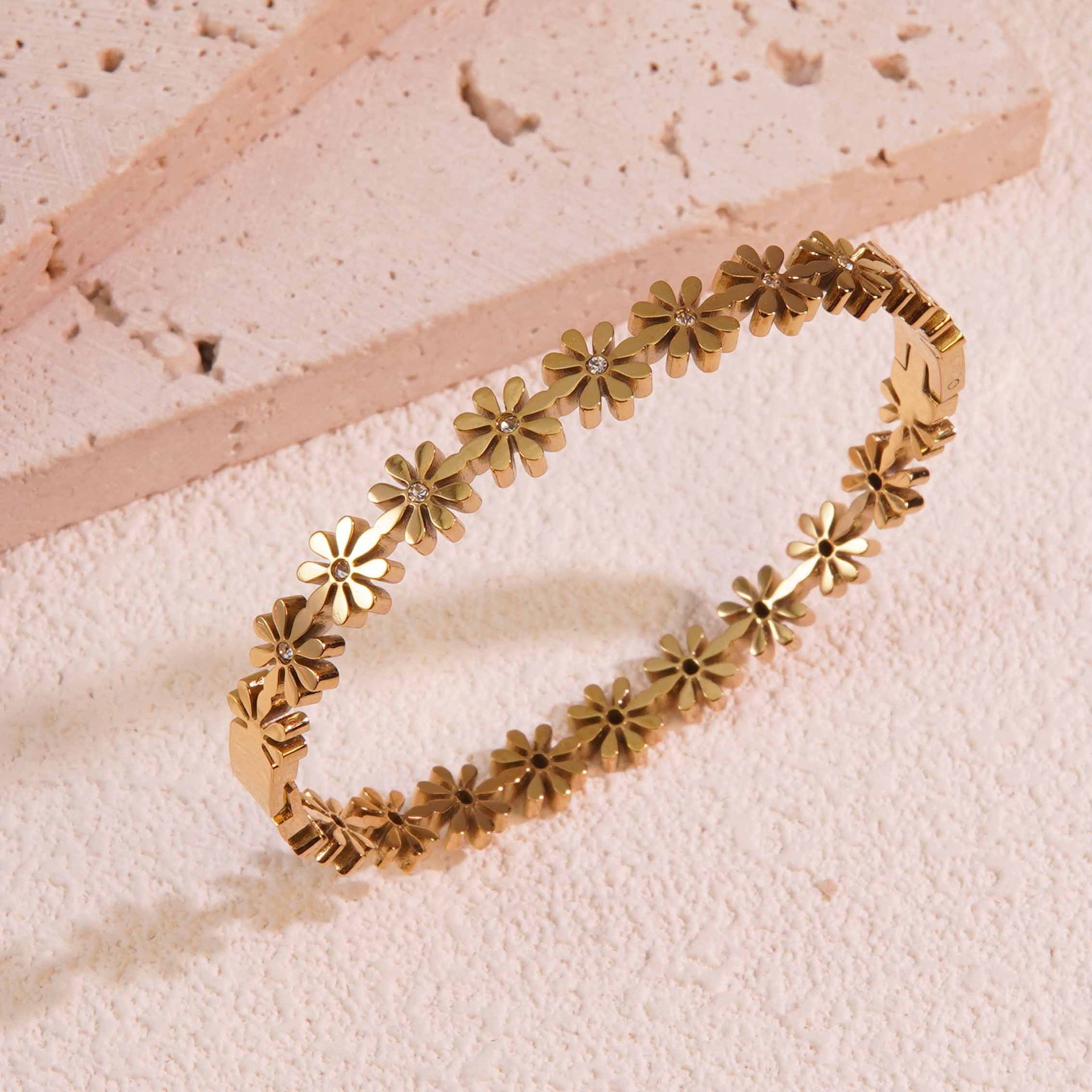 Acier inoxydable 304 parure de bijoux, margueritepâquerette, Placage de couleur d'or, styles différents pour le choix & pour femme, Vendu par PC