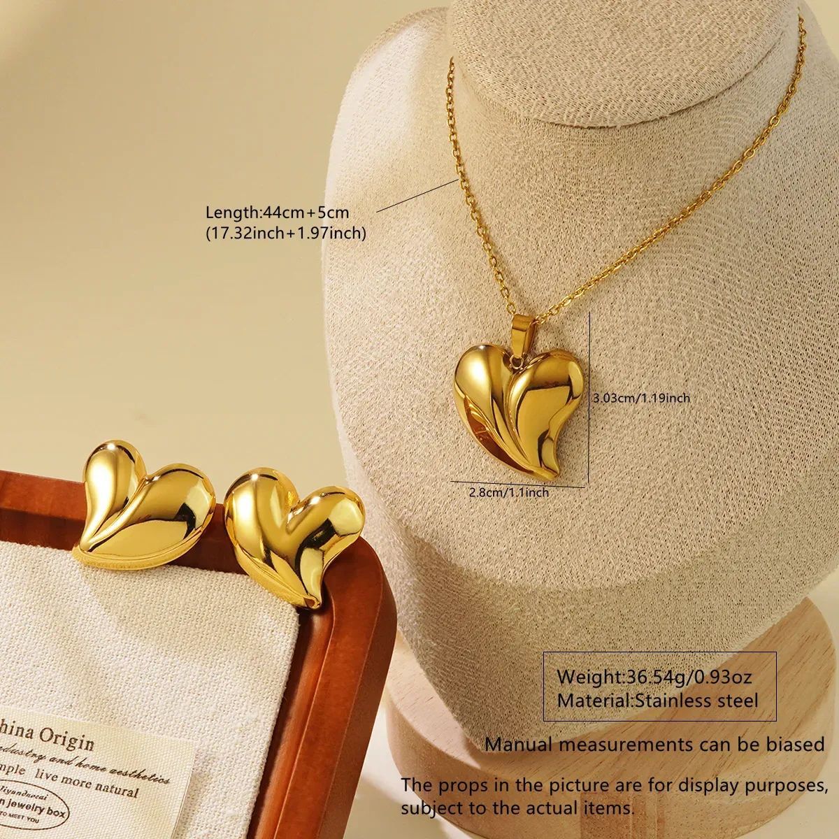 Acier inoxydable 304 parure de bijoux, boucle d'oreille & collier, Placage de couleur d'or, styles différents pour le choix & pour femme, Vendu par fixé