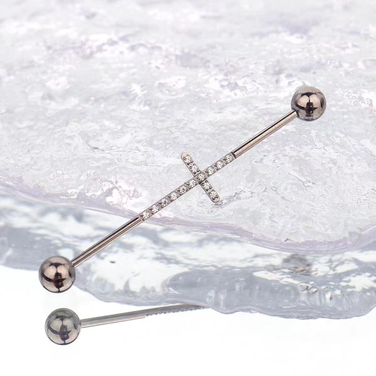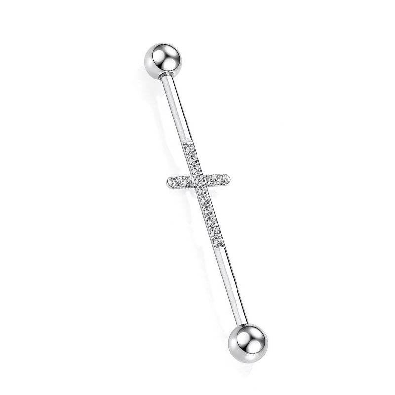 Acier inoxydable 304 piercing oreille, croix, unisexe & normes différentes pour le choix & pavé de micro zircon, couleur originale, Vendu par PC