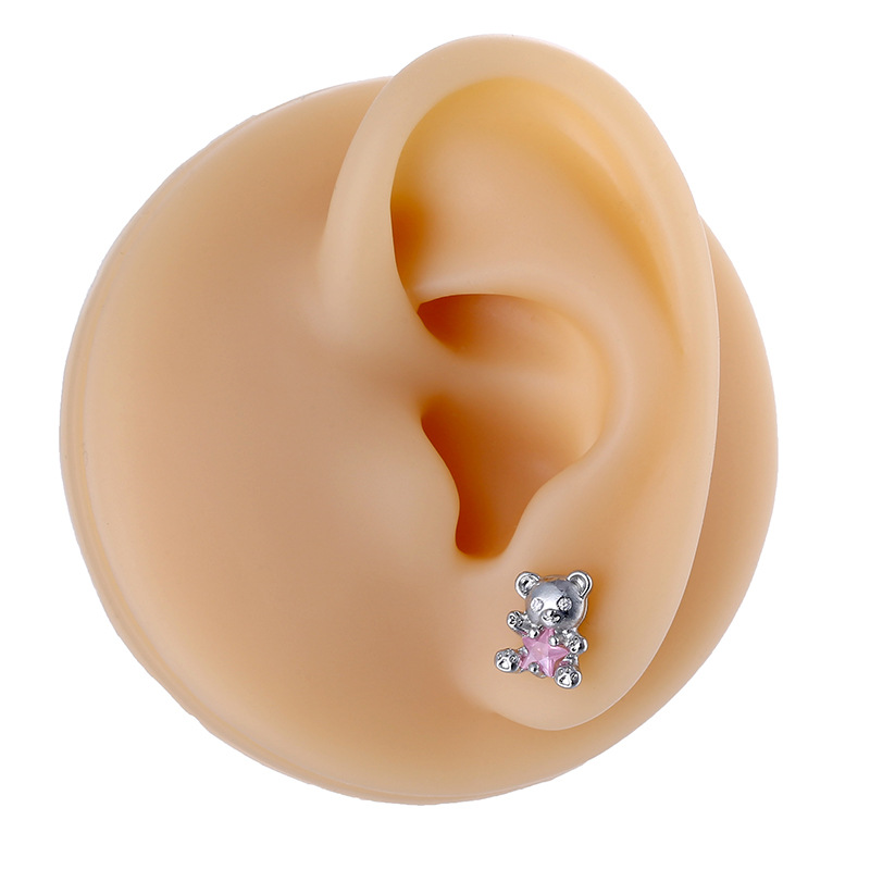 Bijoux de piercing d'oreille en acier inoxydable, avec colle, chat, plus de couleurs à choisir, Vendu par paire