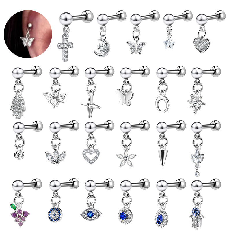 Acier inoxydable 304 piercing oreille, unisexe & styles différents pour le choix & pavé de micro zircon, Vendu par PC