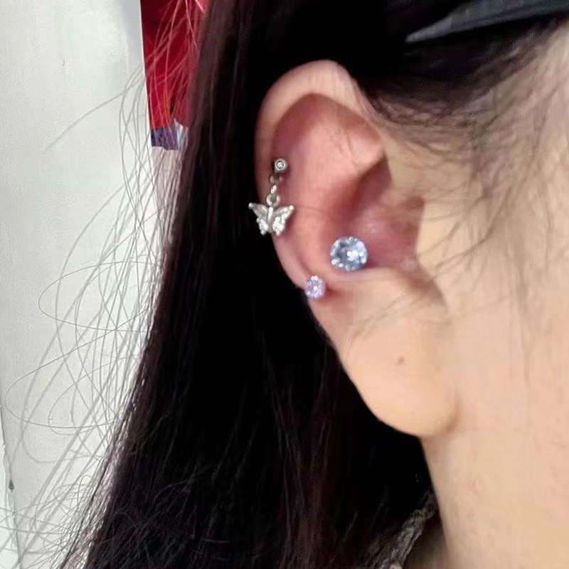 Bijoux de piercing d'oreille en acier inoxydable, Placage, avec zircone cubique, couleurs mélangées Vendu par PC
