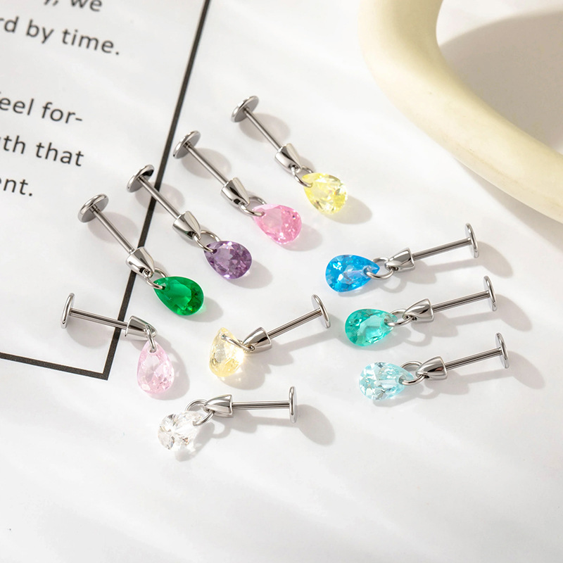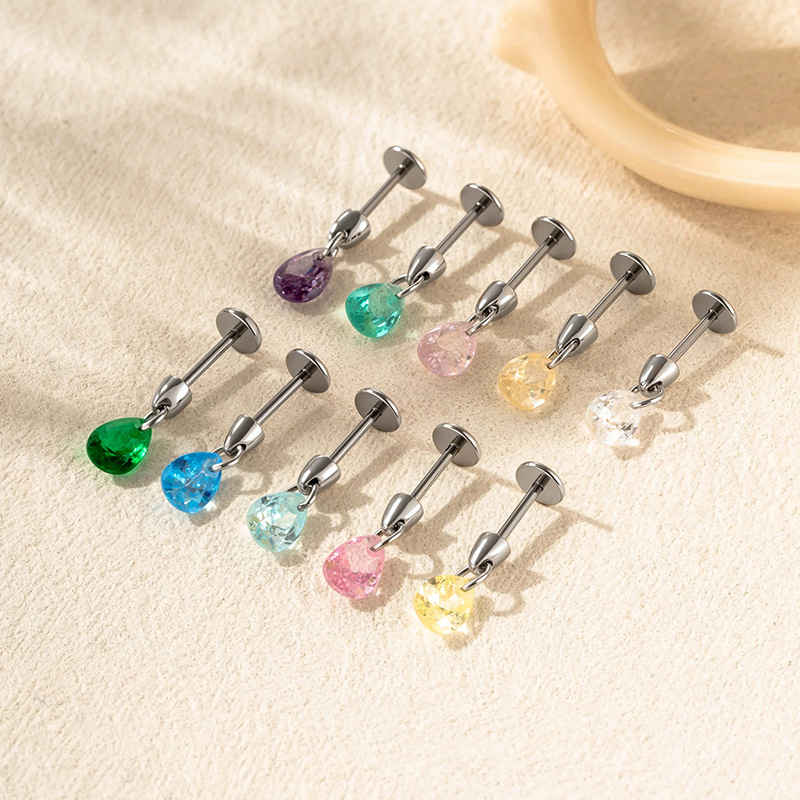 Bijoux de piercing d'oreille en acier inoxydable, Placage, avec zircone cubique, couleurs mélangées Vendu par PC
